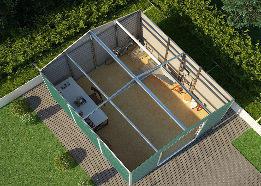 Na pevný pozinkovaný rám přimontujete ocelový, pozinkovaný plech s práškovým nástřikem, který je odolný vůči špatnému počasí. Součástí balení jsou dveřní úchyty, díky kterým domek snadno zajistíte proti nezvaným hostům.