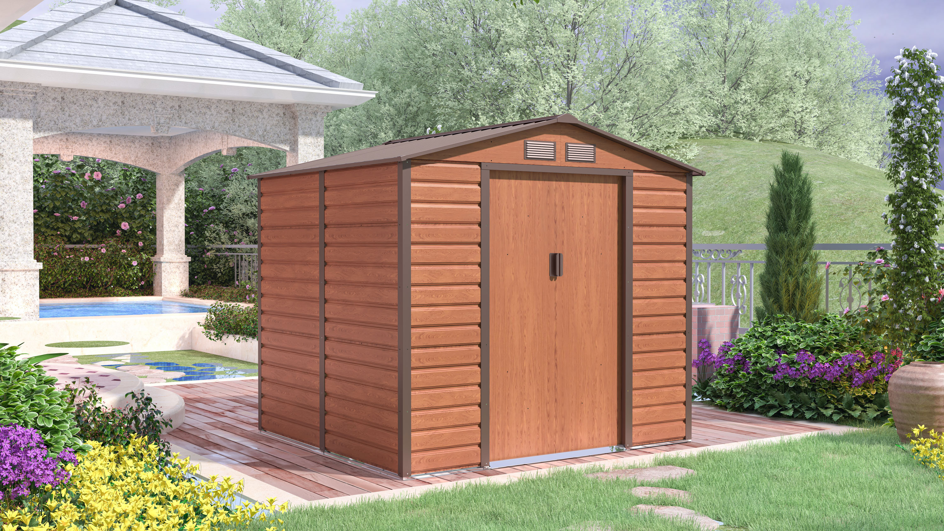 Hnědý zahradní domek G21 GAH 529 je vyroben z kvalitního profilovaného ocelového plechu tloušťky 0,25 – 0,30 mm. Je pozinkovaný a má práškový nástřik. Konstrukce je rovněž ocelová a pozinkovaná. Je ideální pro celoroční uskladnění zahradního nářadí.