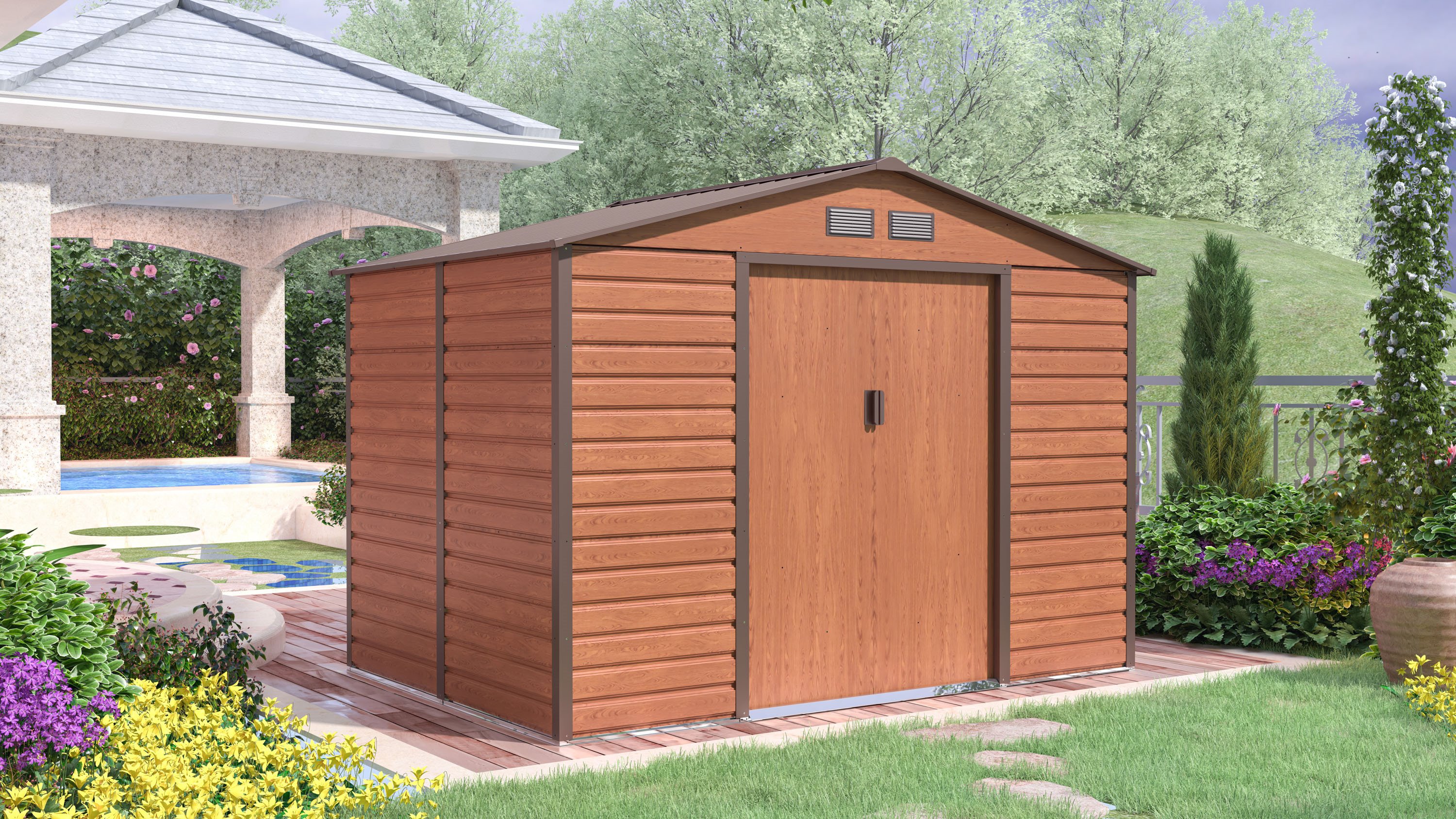 Hnědý zahradní domek G21 GAH 407 je vyroben z kvalitního profilovaného ocelového plechu tloušťky 0,25 – 0,30 mm. Je pozinkovaný a má práškový nástřik. Konstrukce je rovněž ocelová a pozinkovaná. Je ideální pro celoroční uskladnění zahradního nářadí.