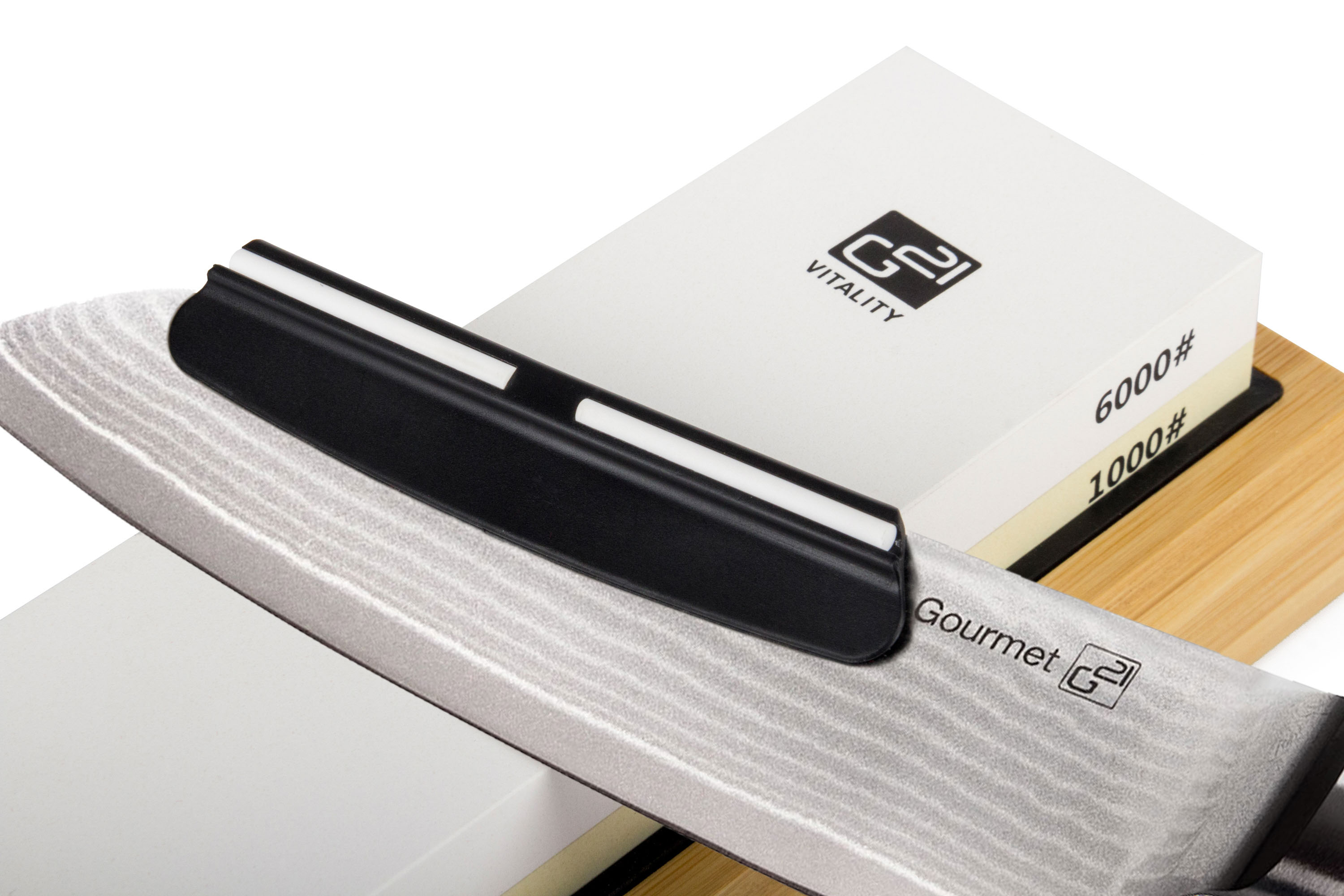 Věděli jste, že se nejčastěji při vaření pořežete tupým nožem? Dokonale ostrý nůž je v kuchyni polovina úspěchu. Proto jsme vám k sadě jako dárek přibalili oboustranný brusný kámen G21 se zrnitostí 1 000 / 6 000, který vám umožní dokonale nabrousit všechny druhy kuchyňských nožů, včetně damaškových. Brusný kámen G21 je určený pro broušení s vodou.