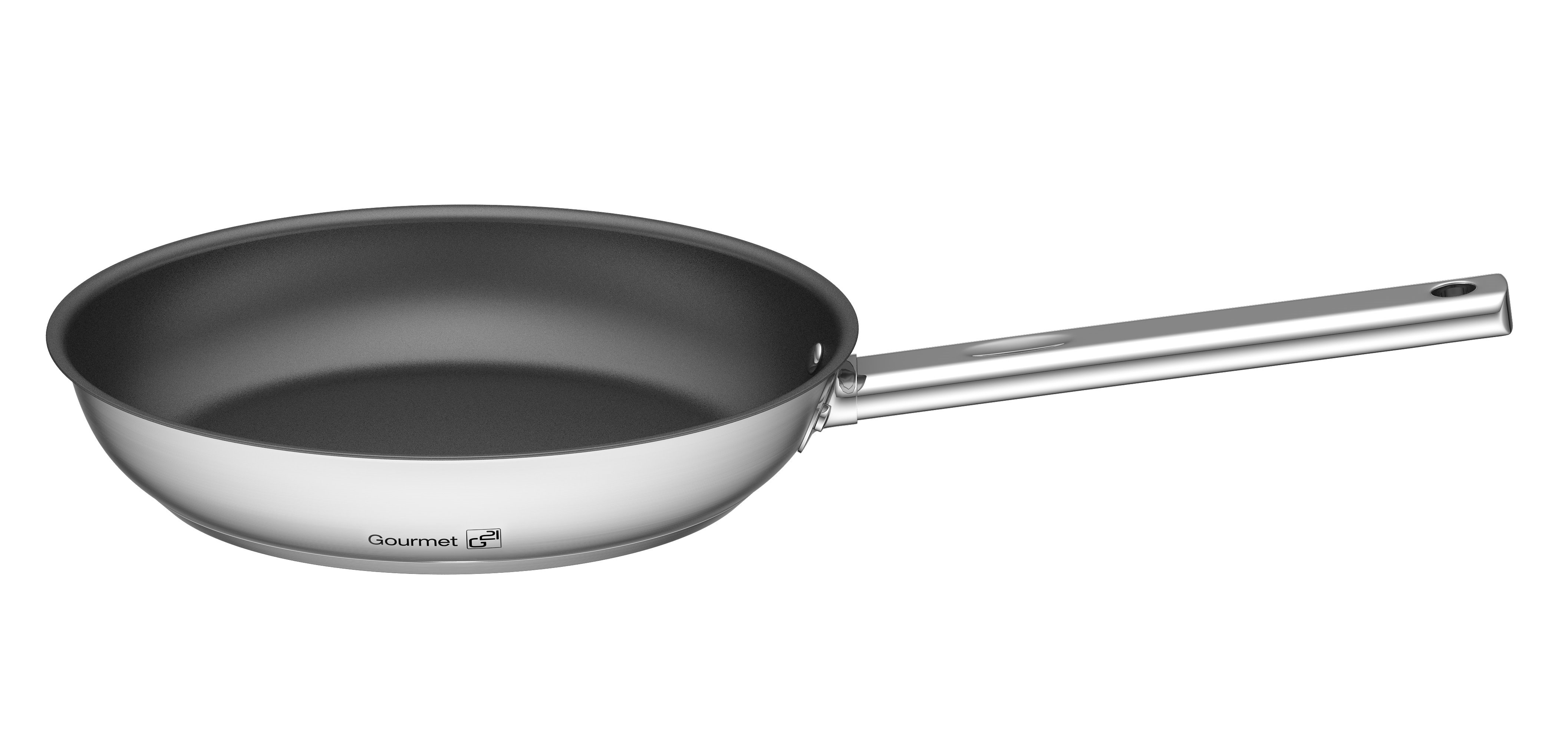 Ocel Stainless Steel 304, jinak také chromniklová ocel 18/10 CrNi je prověřený a nejčastěji používaný materiál na gastro nádobí. Potravinářská ocel 18/10 CrNi obsahuje 18 % chromu a 10 % niklu. Pro potravinářství je vhodná především díky své vysoké odolnosti vůči poškození i korozi. Vnitřní povrch pánve je potažen odolnou teflonovou vrstvou, díky které se jídlo nikdy nepřipálí.