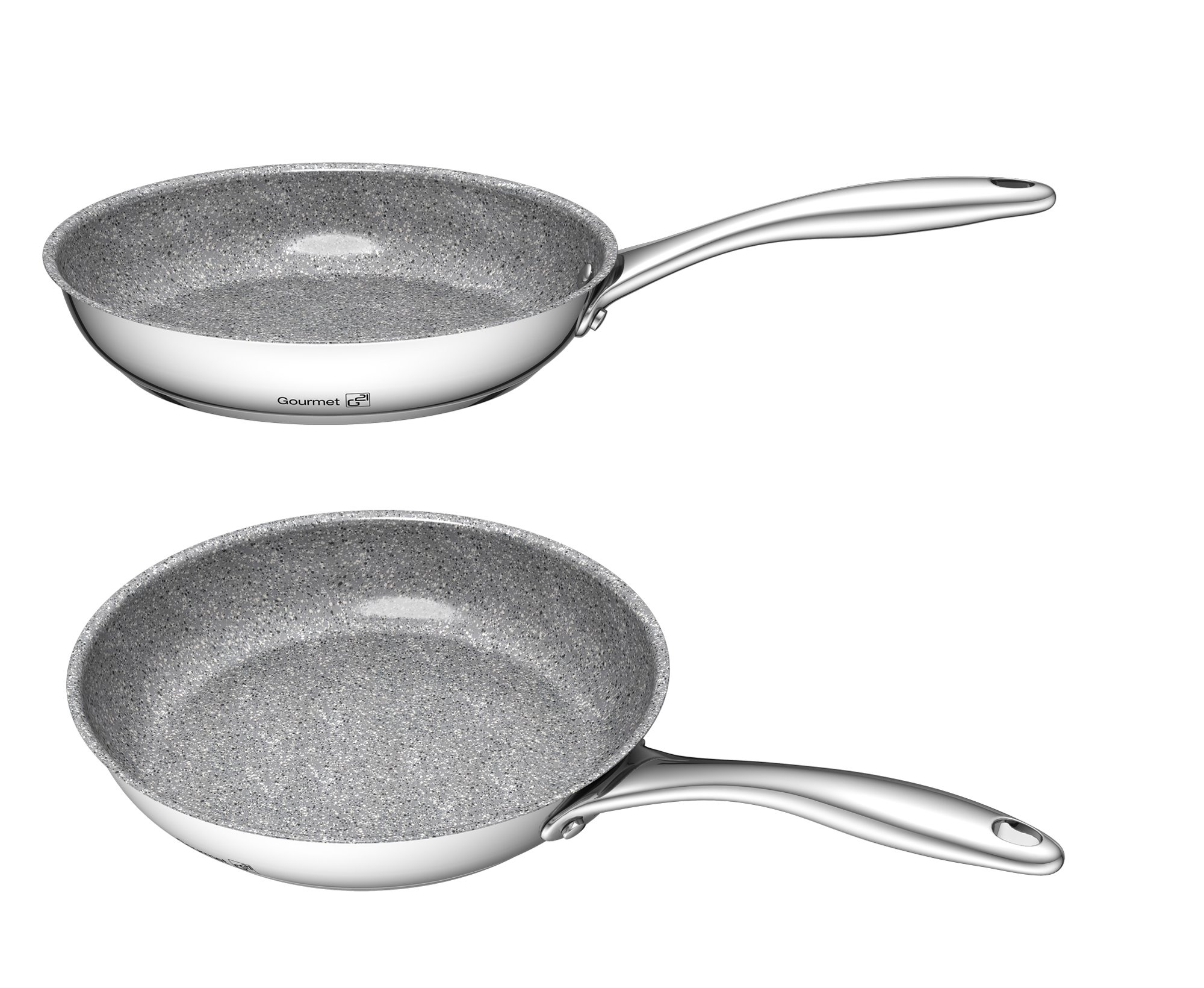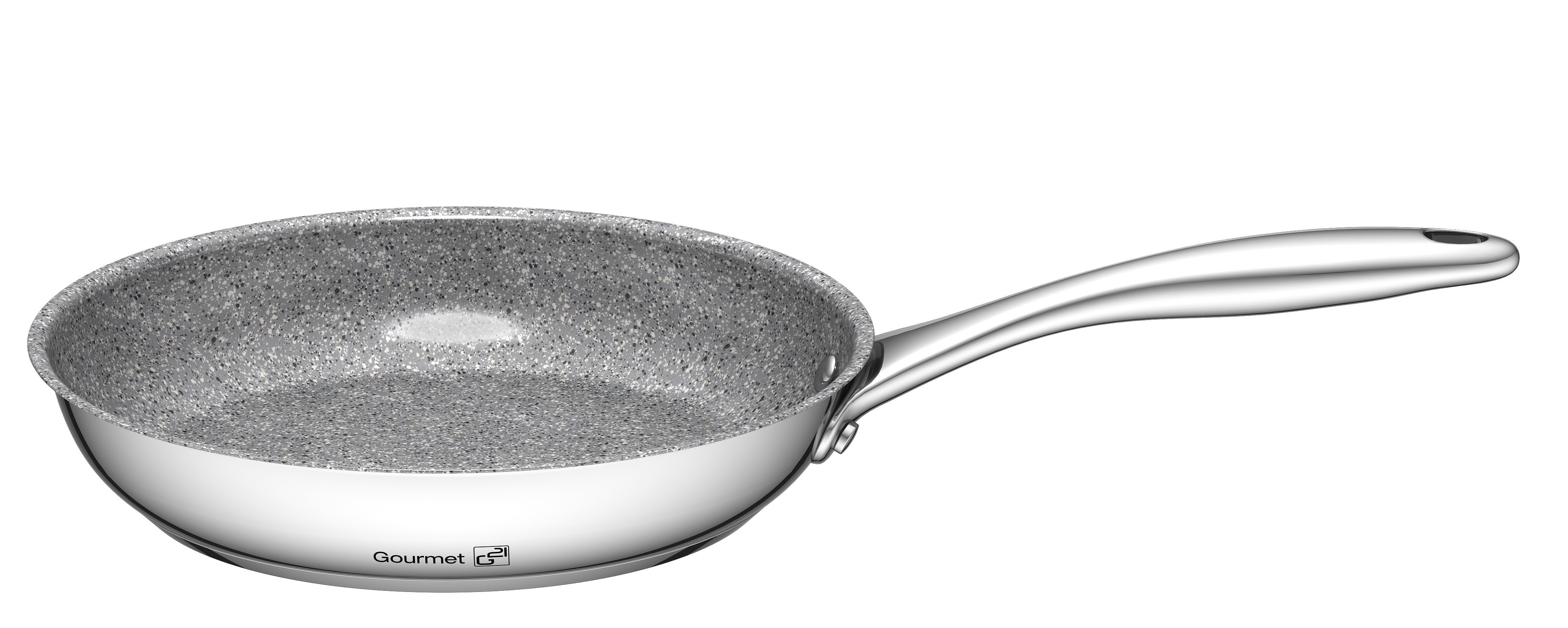 Celonerezová pánev G21 Gourmet Miracle s nepřilnavým povrchem GREBLON® C3+ zaujme na první pohled unikátní vnitřní vrstvou. Speciální potravinářská ocel 18/10 CrNi s vrstvou GREBLON® C3+ je dokonalým materiálem díky svým jedinečným vlastnostem.