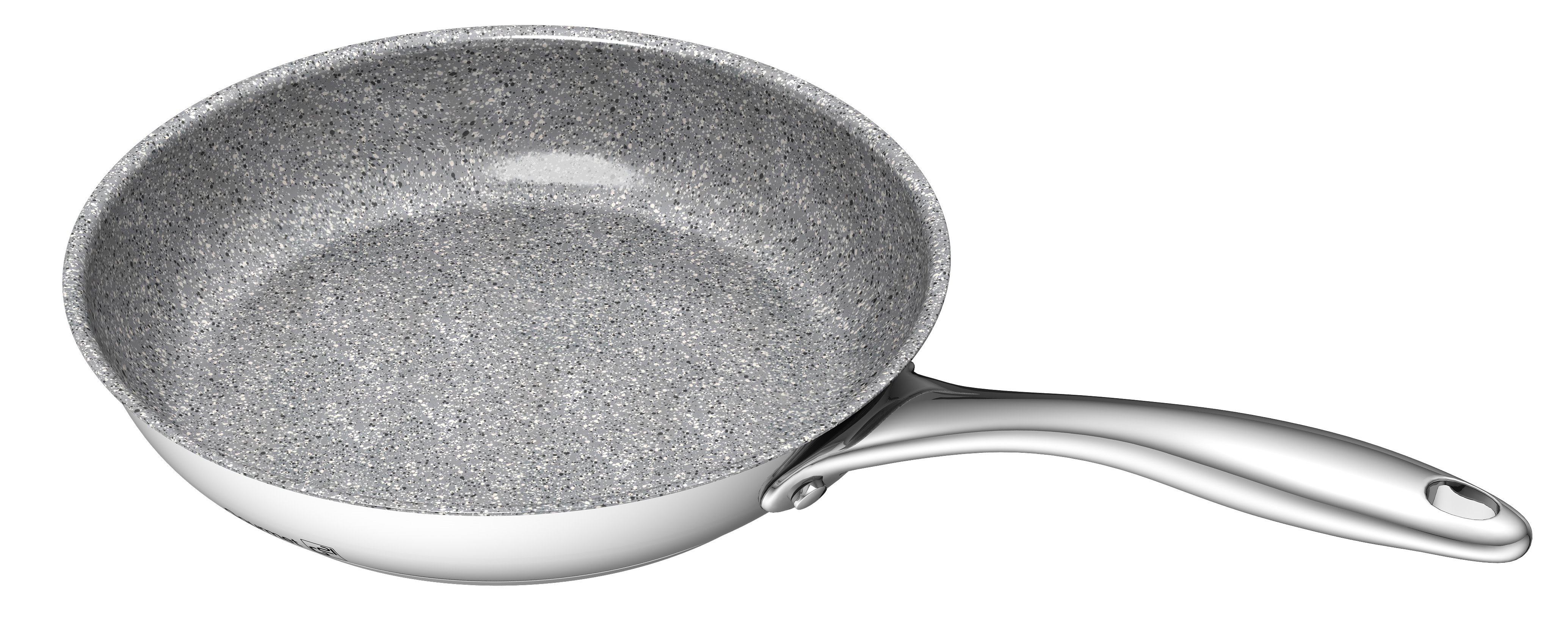 Ocel Stainless Steel 304, jinak také chromniklová ocel 18/10 CrNi je prověřený a nejčastěji používaný materiál na gastro nádobí. Potravinářská ocel 18/10 CrNi obsahuje 18 % chromu a 10 % niklu. Pro potravinářství je vhodná především díky své vysoké odolnosti vůči poškození i korozi. Tuto odolnost jsme ještě podpořili speciálním leštěním povrchu zvenčí a již zmíněnou greblonovou vrstvou zevnitř pánve.