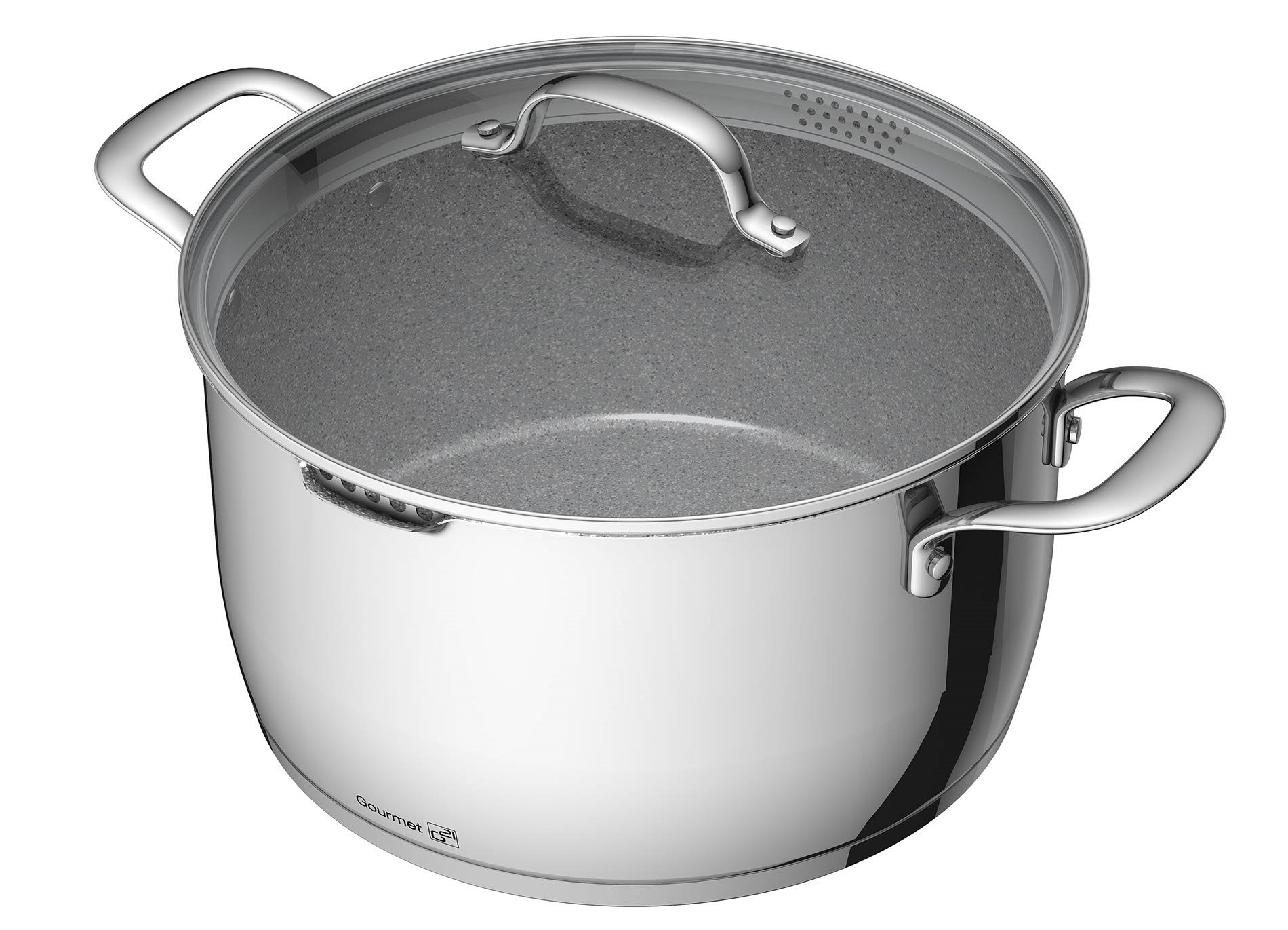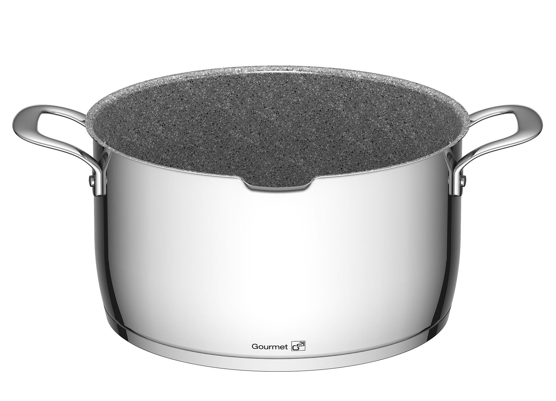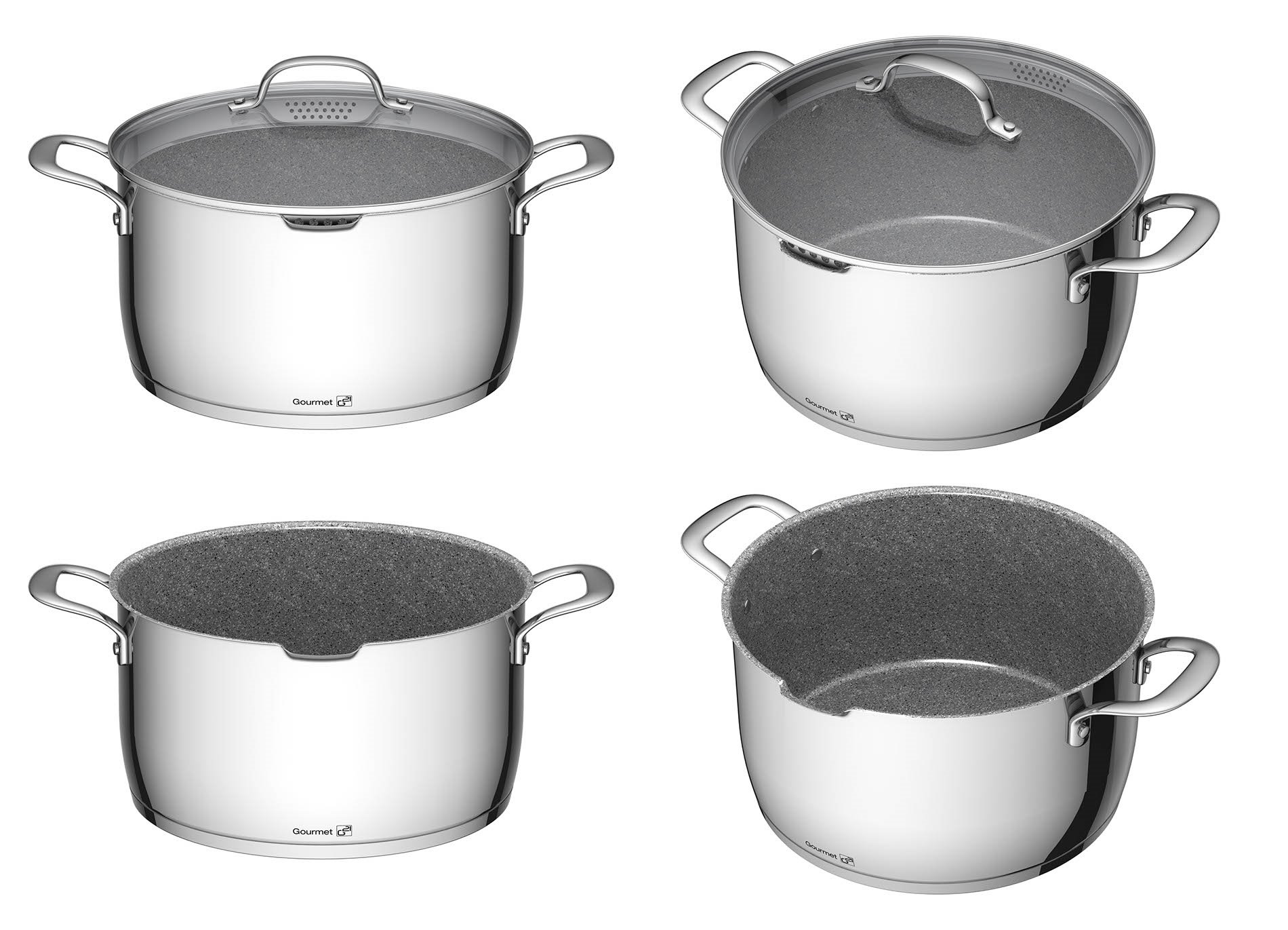 Celonerezový hrnec G21 Gourmet Miracle s nepřilnavým povrchem GREBLON® C3+ zaujme na první pohled unikátní vnitřní vrstvou. Speciální potravinářská ocel 18/10 CrNi s vrstvou GREBLON® C3+ je dokonalým materiálem díky svým jedinečným vlastnostem.