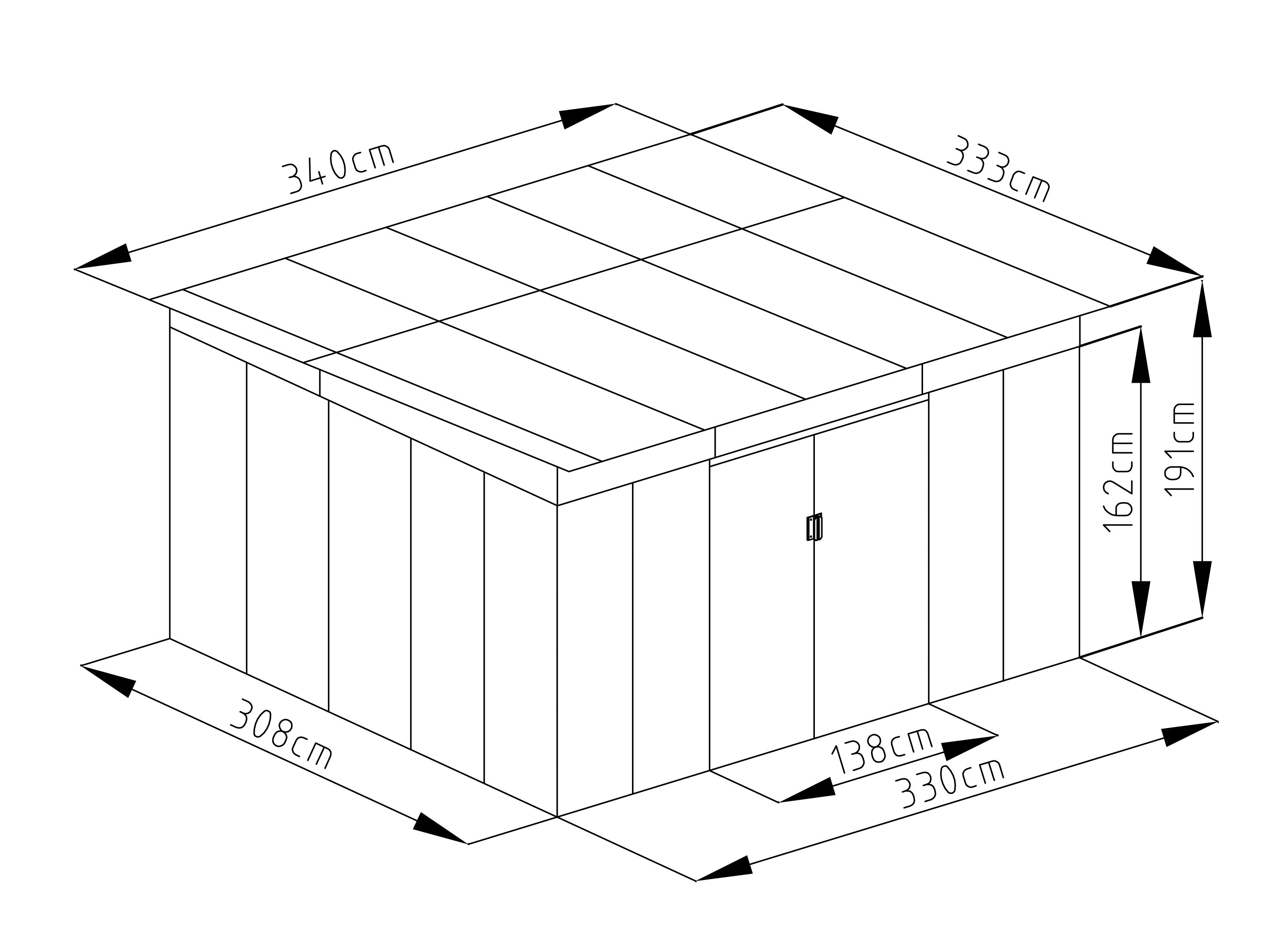 Zahradní domek GRAH 1132 má dvoukřídlé dveře o celkové šířce 138 cm. Vstup do domku je tak opravdu pohodlný, i když nesete nebo vynášíte objemnější věc.