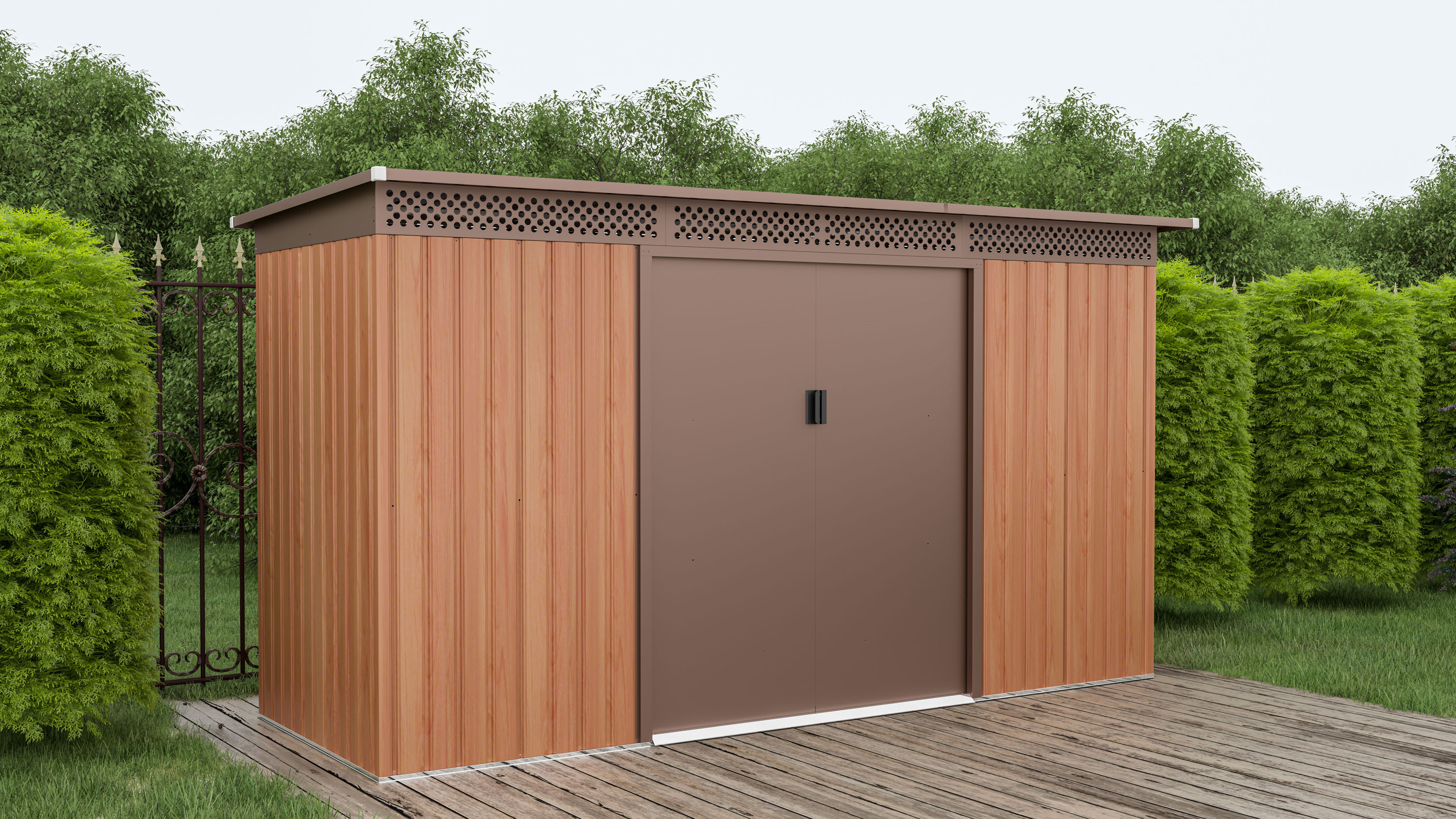 Pozinkem a práškovým nástřikem jsou chráněny i vnější stěny a střecha zahradního domku.