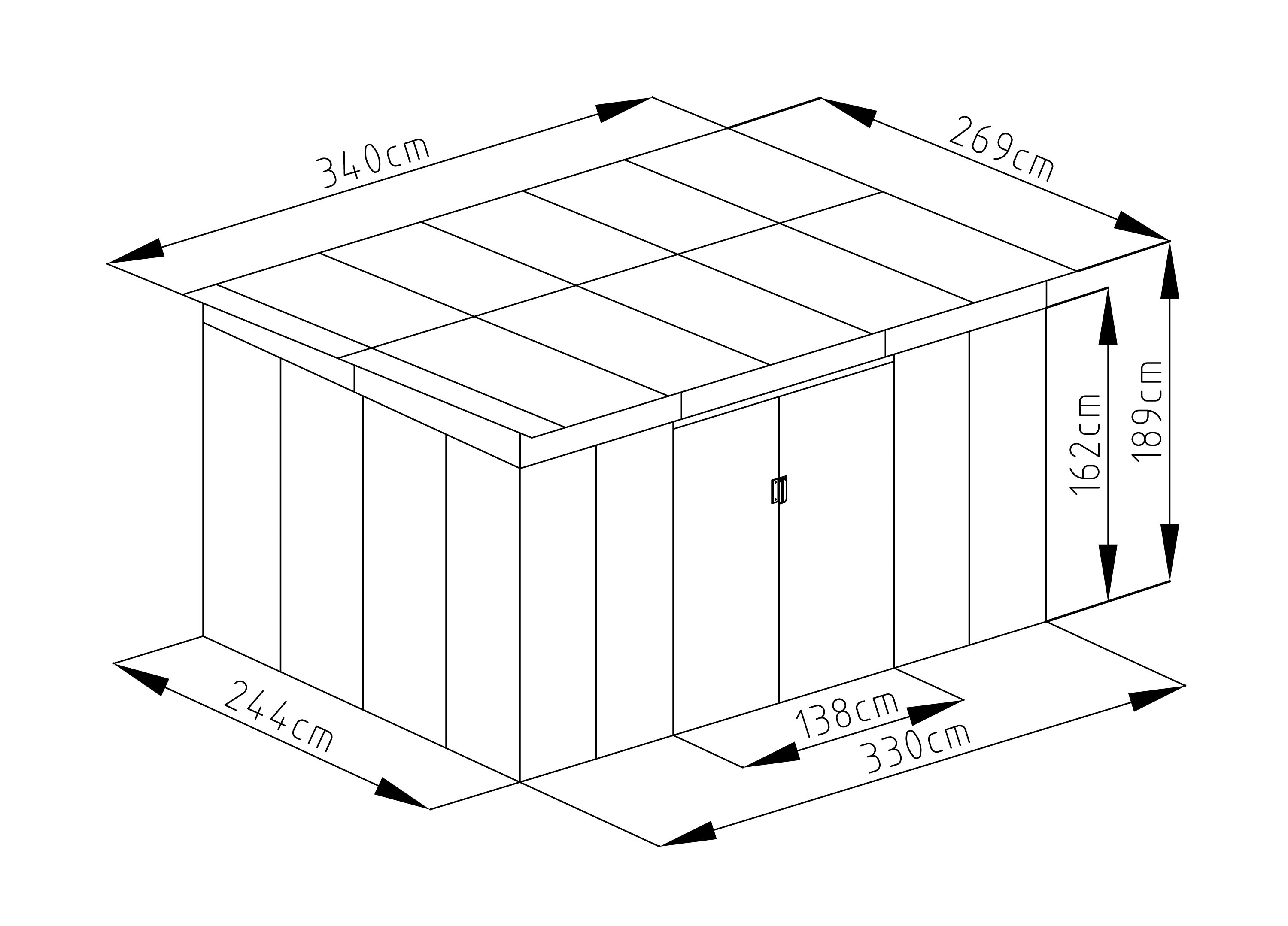 Zahradní domek GRAH 915 má dvoukřídlé dveře o celkové šířce 138 cm. Vstup do domku je tak opravdu pohodlný, i když nesete nebo vynášíte objemnější věc.