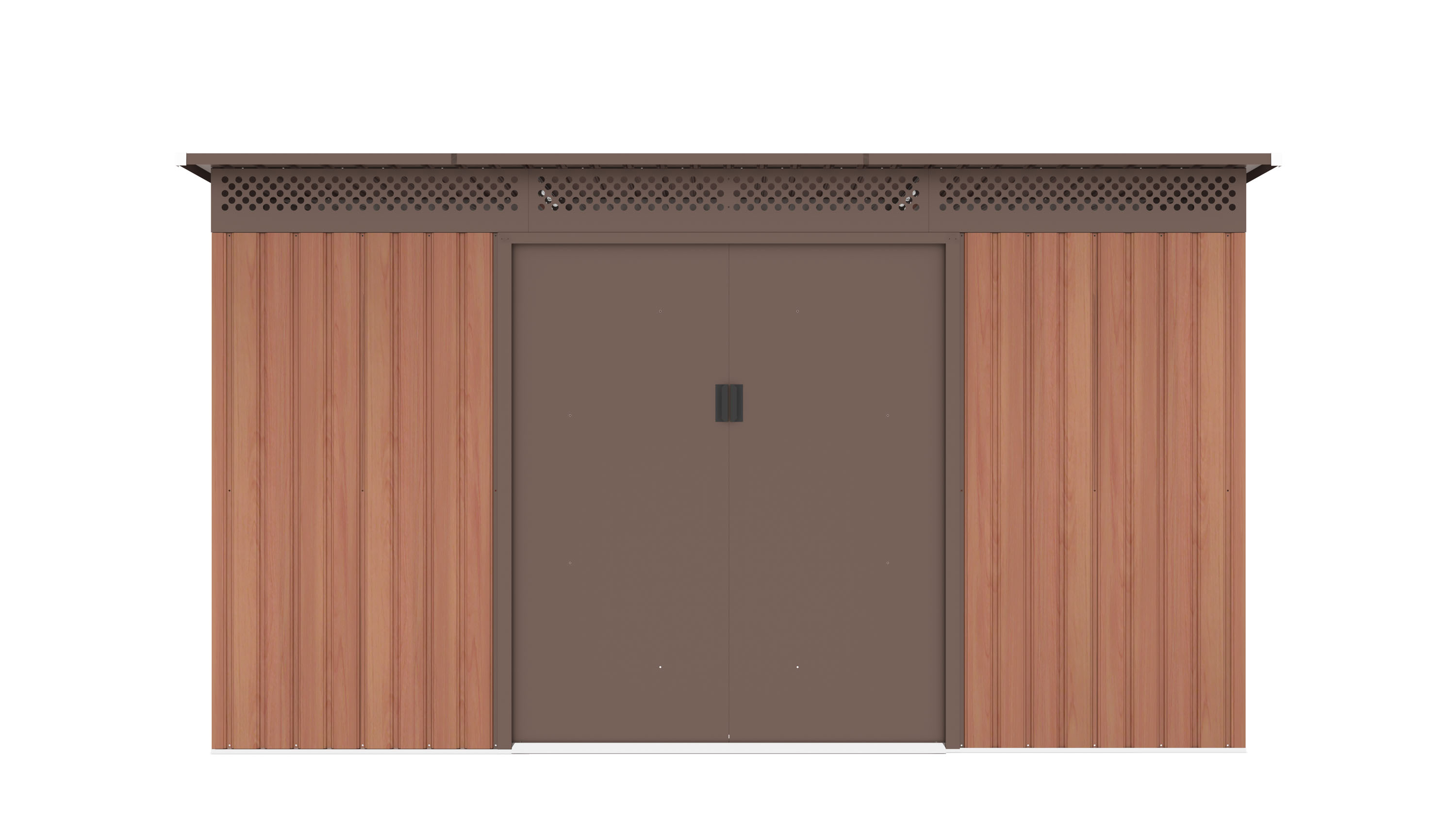 Zahradní domek GRAH 915 má dvoukřídlé dveře o celkové šířce 138 cm. Vstup do domku je tak opravdu pohodlný, i když nesete nebo vynášíte objemnější věc.