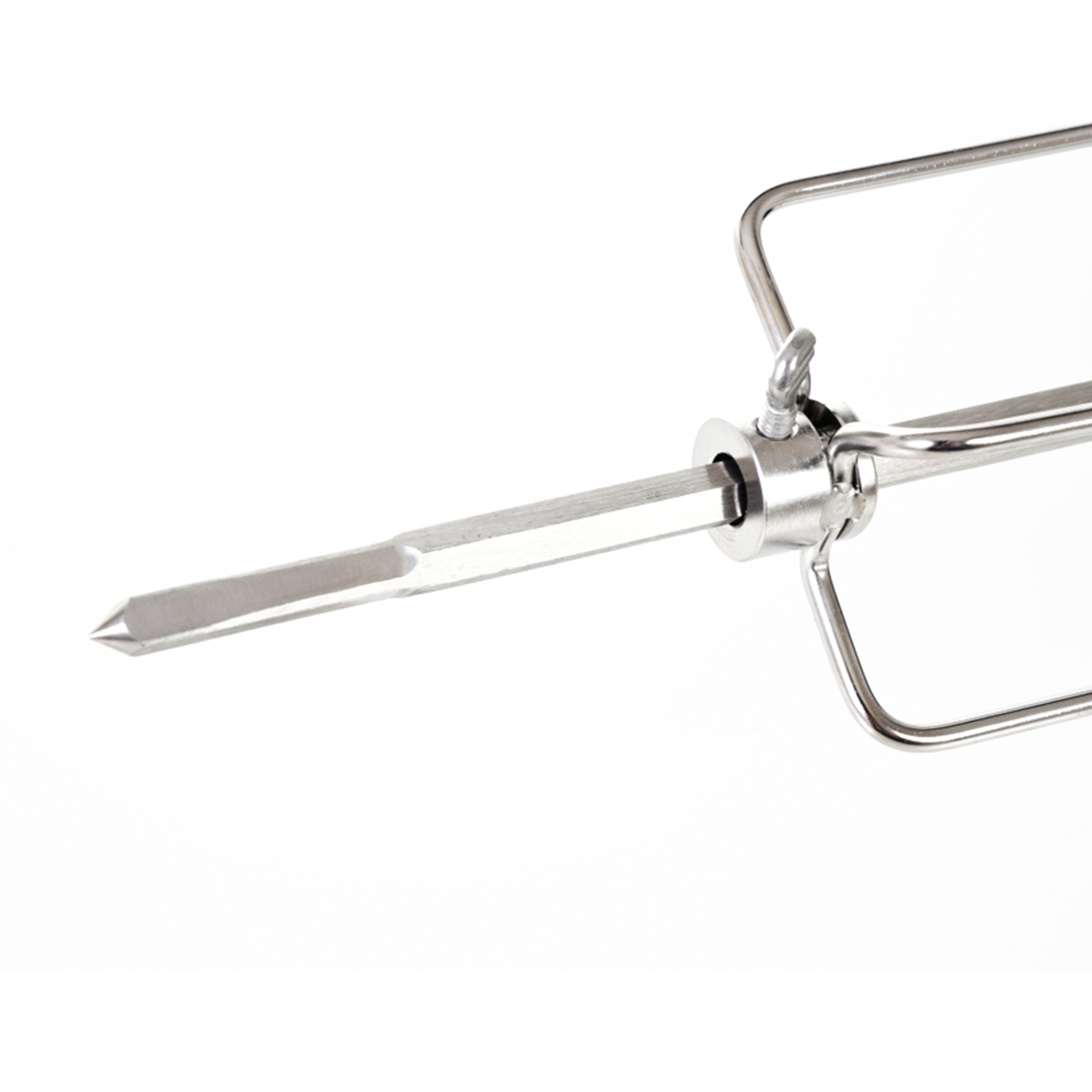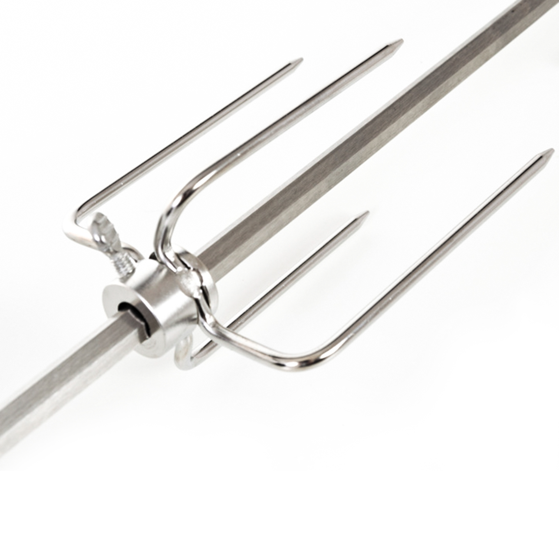 Grilovací jehla s motorem je vyrobena z nerezové oceli a z obou stran je opatřena čtyřmi jehlicemi s aretačními šrouby, díky kterým si můžete jehlice nastavit podle vlastní potřeby.