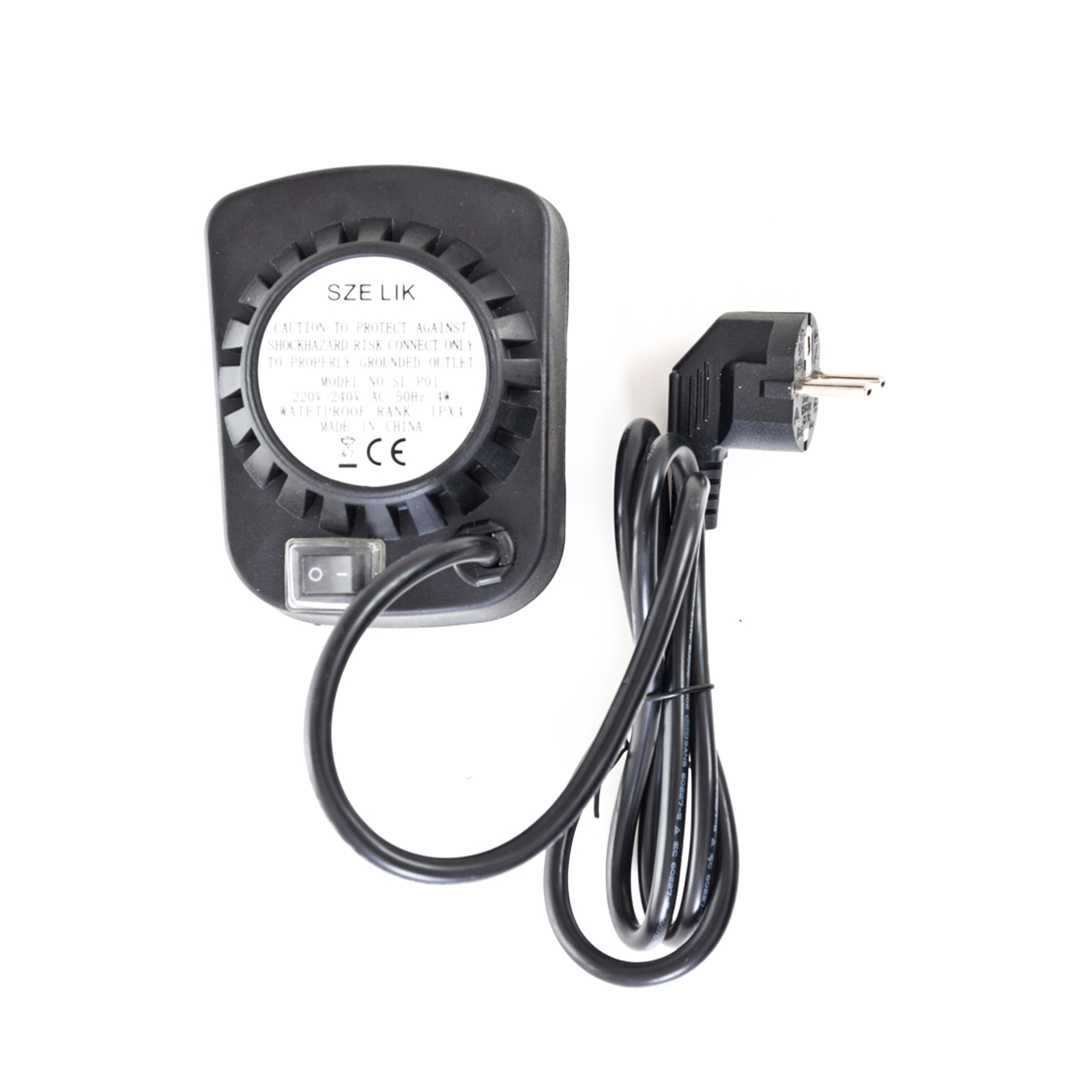 Z jedné strany je jehla opatřena odnímatelným plastovým držadlem, na kterém je praktické očko pro uchycení. Z druhé strany se nachází motorek v plastovém krytu, na kterém je umístěno tlačítko na zapínání / vypínání. Motorek s napětím 230 V jednoduše zapojíte do elektřiny pomocí kabelu v délce cca 125 cm. Motorek s jehlou otáčí rychlostí asi 2 otáčky za minutu, aby se připravovaný pokrm nepřipékal, ale pekl se rovnoměrně.