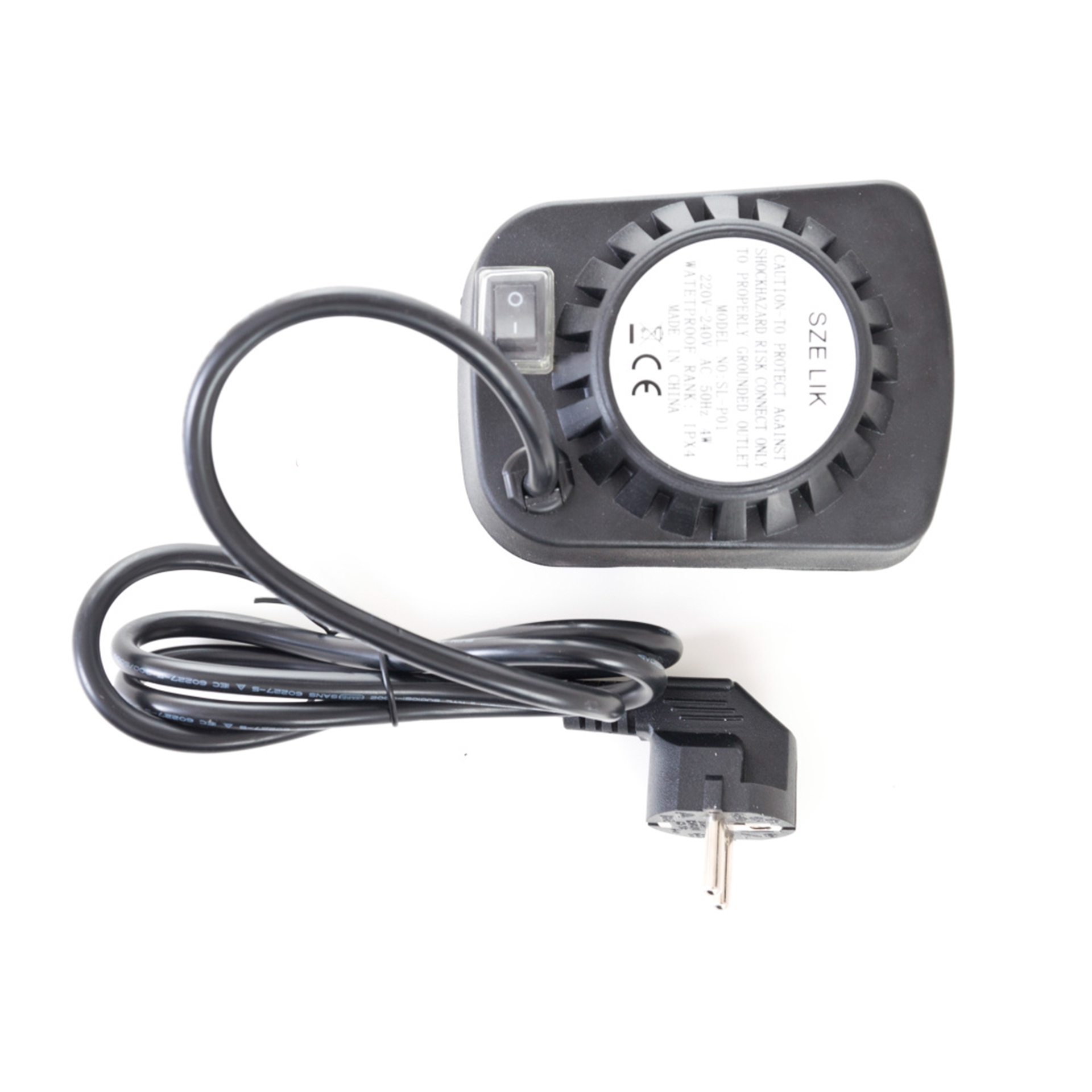 Z jedné strany je jehla opatřena odnímatelným plastovým držadlem, na kterém je praktické očko pro uchycení. Z druhé strany se nachází motorek v plastovém krytu, na kterém je umístěno tlačítko na zapínání / vypínání. Motorek s napětím 230 V jednoduše zapojíte do elektřiny pomocí kabelu v délce cca 125 cm. Motorek s jehlou otáčí rychlostí asi 2 otáčky za minutu, aby se připravovaný pokrm nepřipékal, ale pekl se rovnoměrně.
