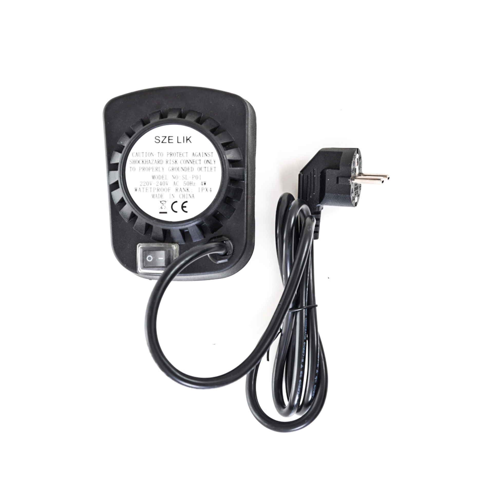 Z jedné strany je jehla opatřena odnímatelným plastovým držadlem, na kterém je praktické očko pro uchycení. Z druhé strany se nachází motorek v plastovém krytu, na kterém je umístěno tlačítko na zapínání / vypínání. Motorek s napětím 230 V jednoduše zapojíte do elektřiny pomocí kabelu v délce cca 125 cm. Motorek s jehlou otáčí rychlostí asi 2 otáčky za minutu, aby se připravovaný pokrm nepřipékal, ale pekl se rovnoměrně.