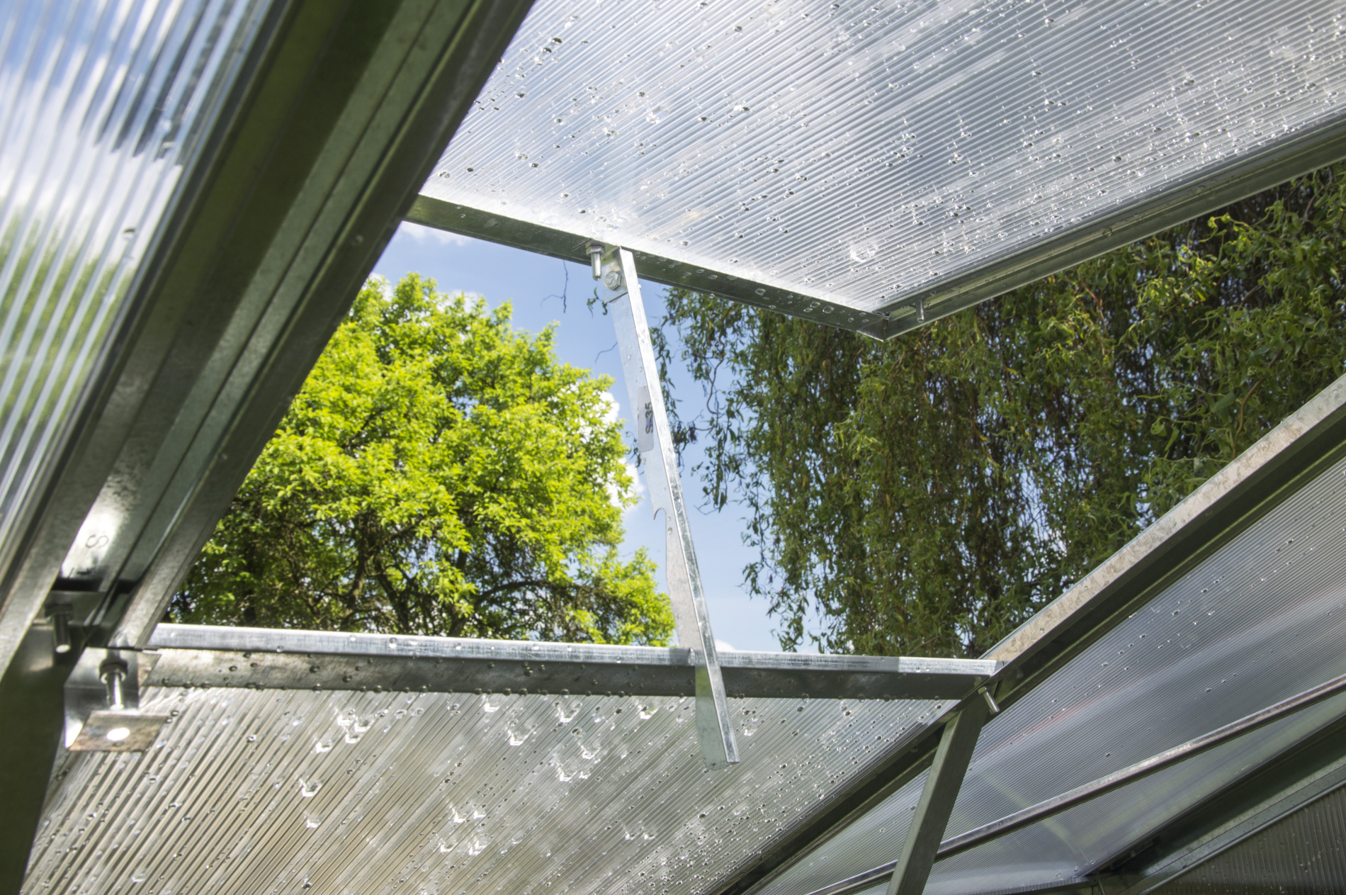 Aby nedocházelo k přehřátí rostlin, je skleník opatřen střešním oknem pro dostatečné odvětrávání. Při jeho otevření dochází k výměně vzduchu uvnitř skleníku, odvádí se přebytečná vlhkost a nežádoucí teplo, které by se jinak při silném slunečním záření kumulovalo pod polykarbonátovou výplní.