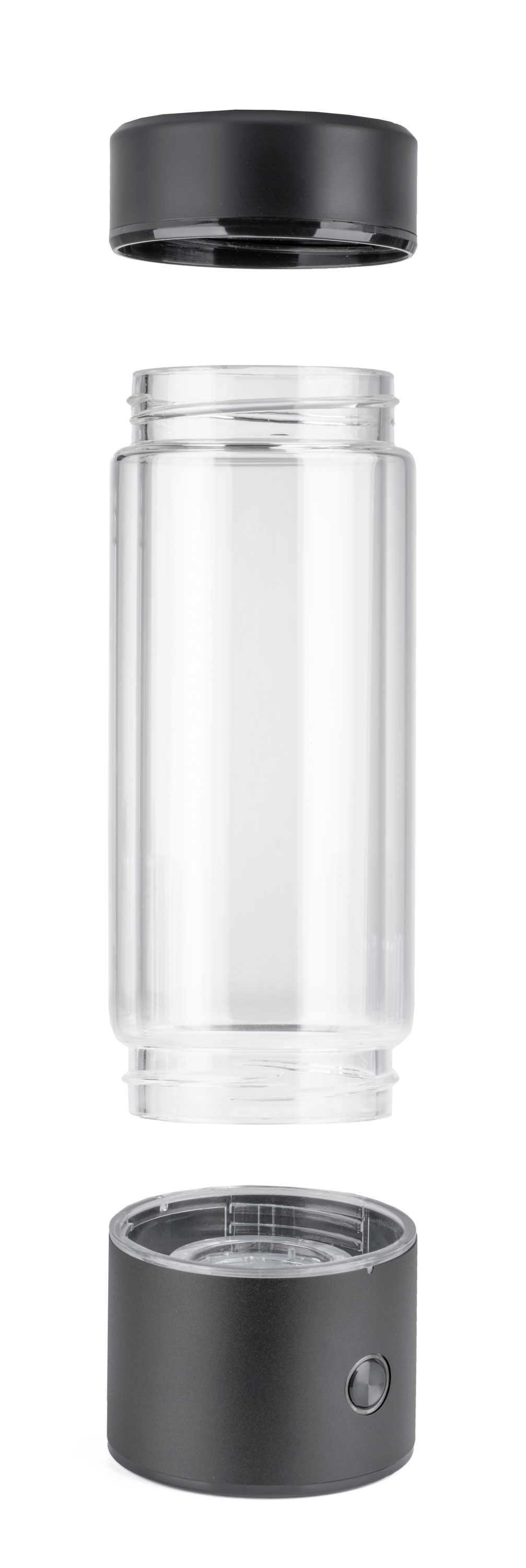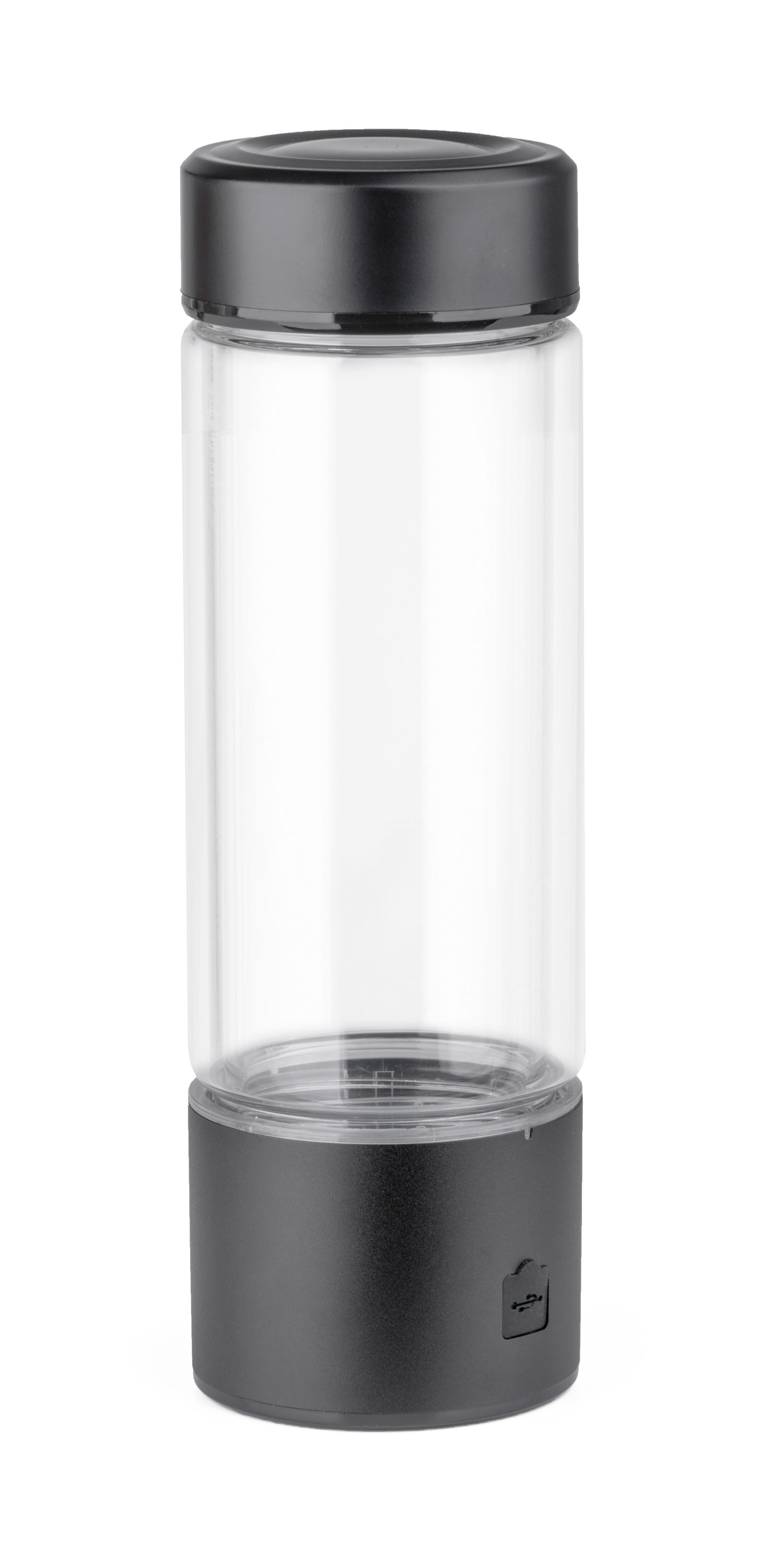 Vodíková voda s koncentrací aktivního vodíku až 2500 ppb, ORP -700 mV, příprava za 5 min, PEM membrána. Lahev z borosilikátového skla o objemu 325 ml.