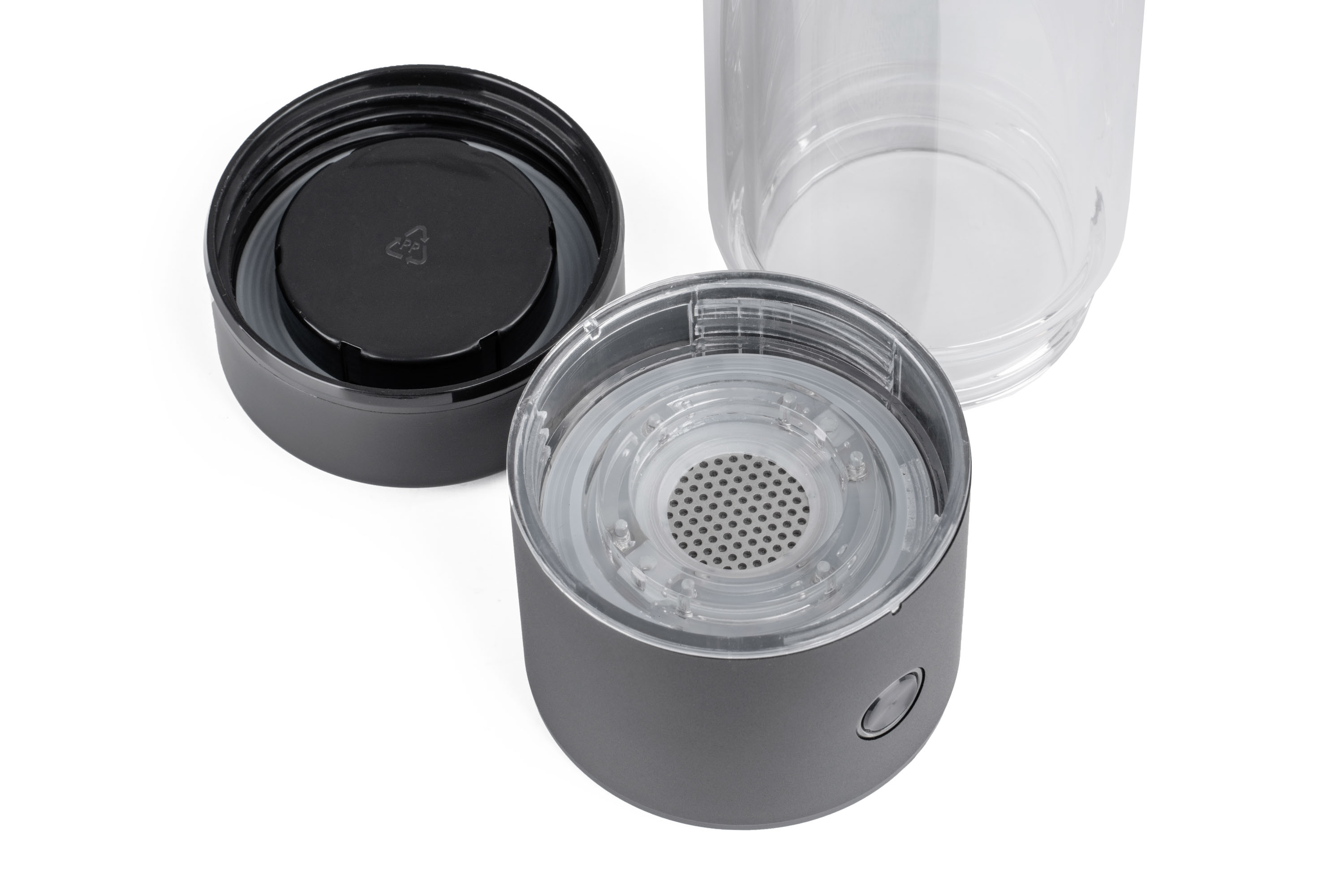 Vodíková voda s koncentrací aktivního vodíku až 5000 ppb, ORP -700 mV, příprava za 10 min, PEM membrána. Tritanová lahev o objemu 290 ml, použití 2v1 - originální lahev, inhalační hadička (součástí balení).