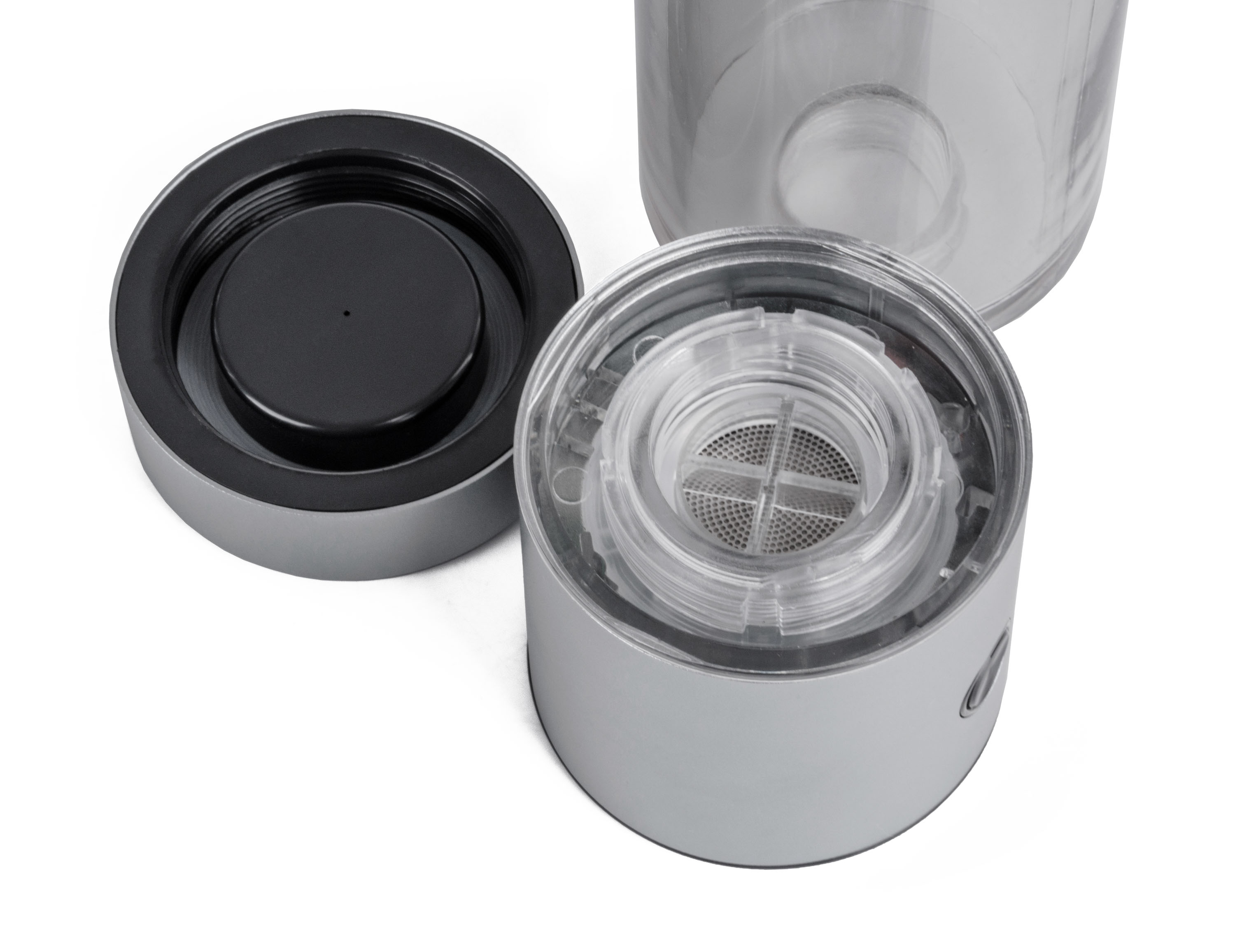 Vodíková voda s koncentrací aktivního vodíku až 5000 ppb, ORP -700 mV, příprava za 10 min, PEM membrána. Tritanová lahev o objemu 290 ml, použití 2v1 - originální lahev, inhalační hadička (součástí balení).