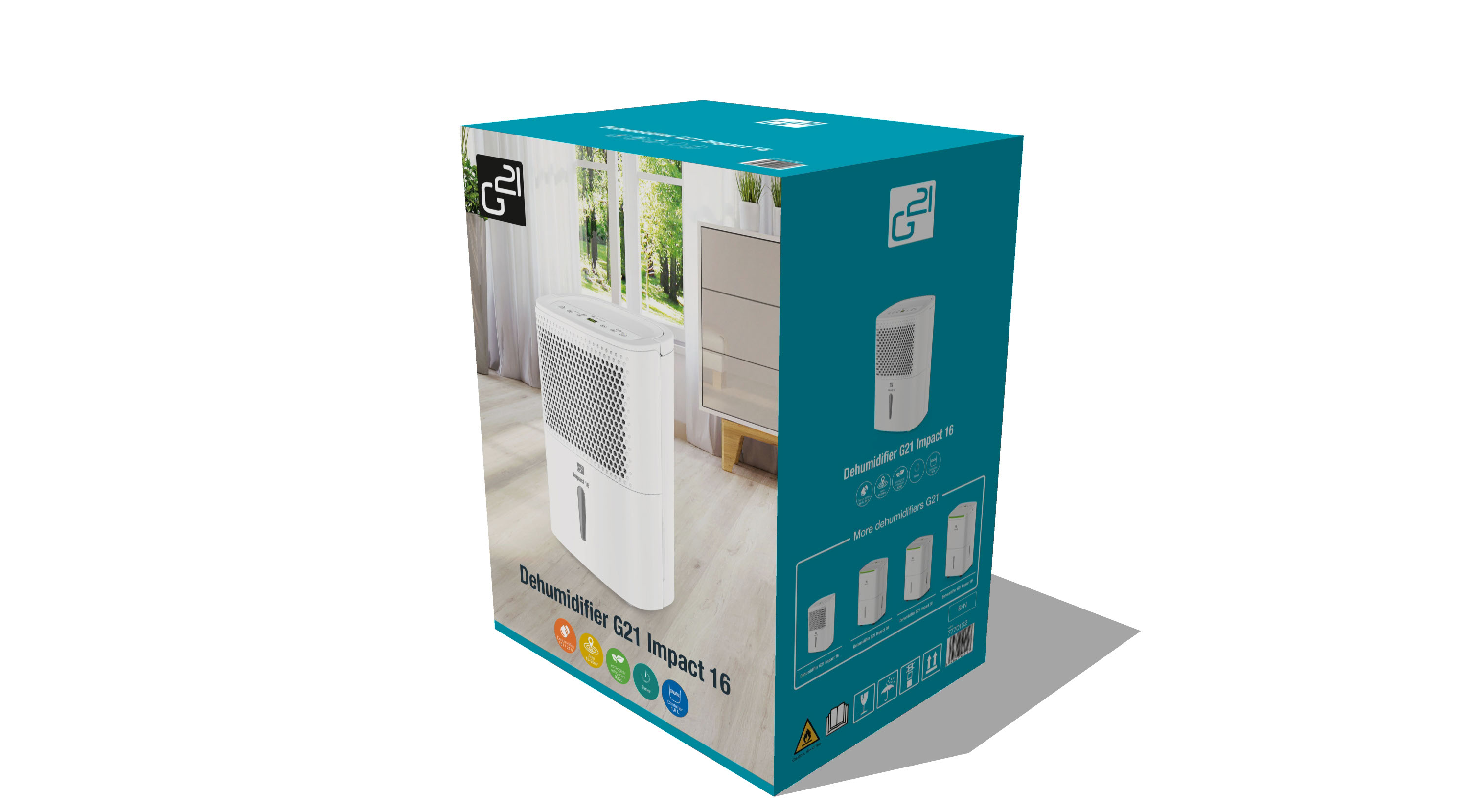 Odvlhčovač vzduchu od české značky G21 má kapacitu 16 l za 24 hodin. Je vybaven 1,8l nádržkou na kondenzát s průhledným indikátorem stavu. Pozorovat jej však ani nemusíte – odvlhčovač se při naplnění nádržky sám vypne. Odvlhčovač používá ekologické chladivo R290, které nepoškozuje ozónovou vrstvu.