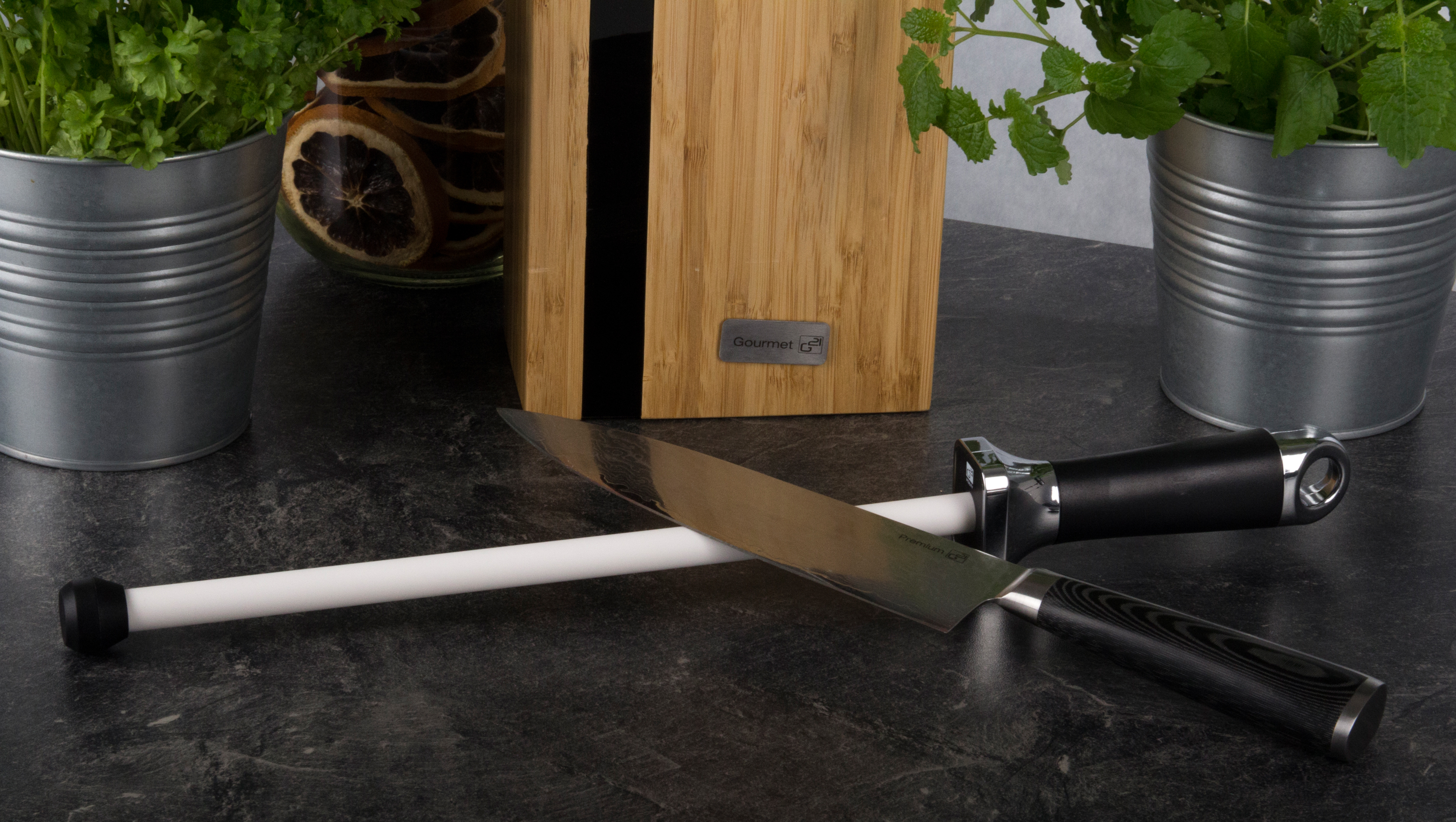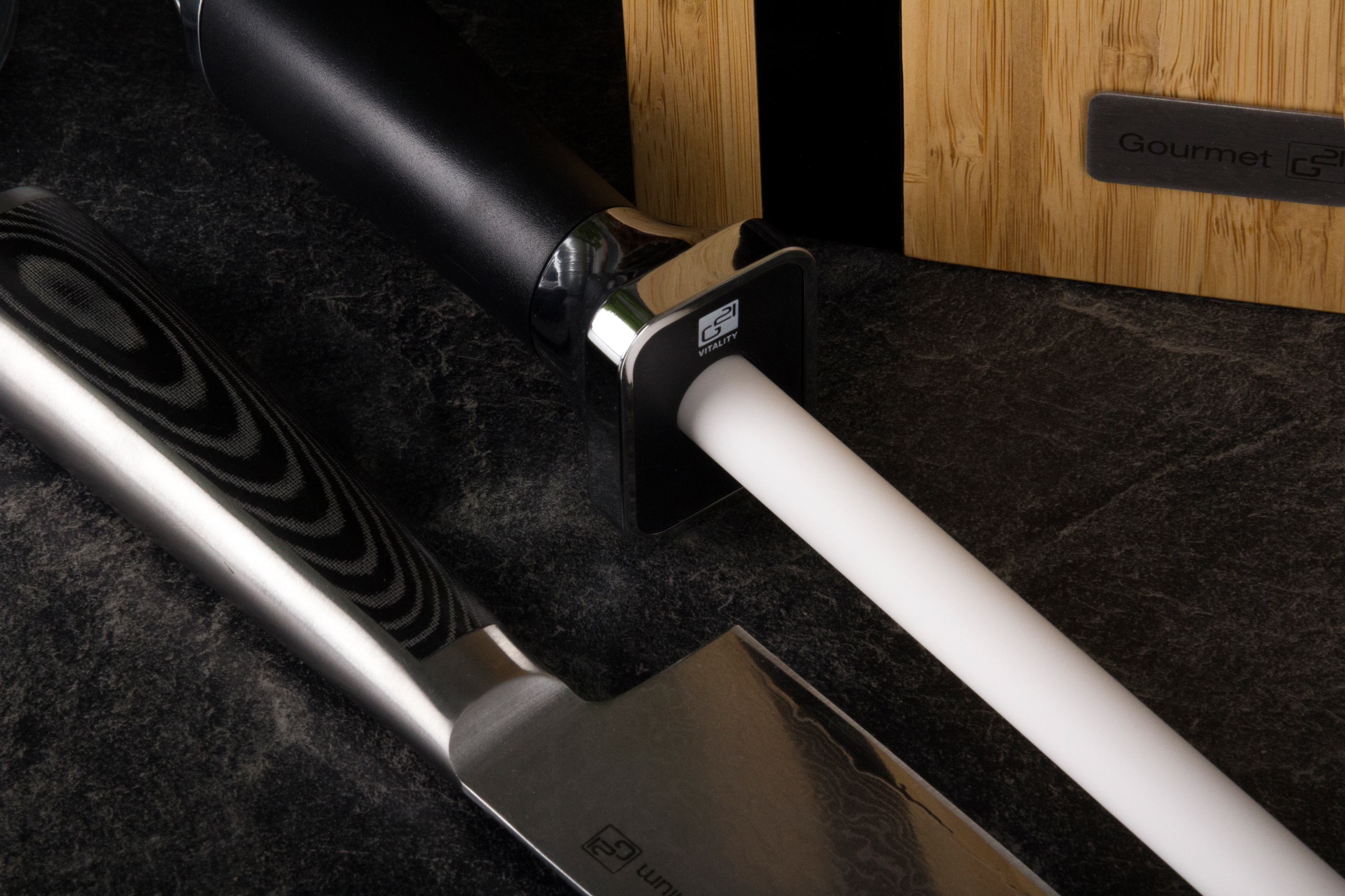 Pokud máte rádi přírodní materiály, pak je přímo pro vás stvořen blok na nože G21 Gourmet Damascus. Blok je vyroben z bambusového dřeva. 5 otvorů pro nože různých velikostí.