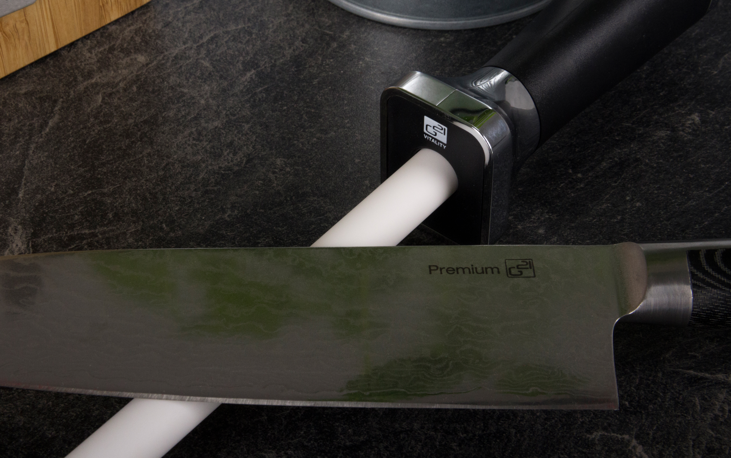 Pro jemné obtažení ostří, k finálnímu dočištění nože po broušení brusným kamenem nebo k dobroušení nožů použijte tuto špičkovou ocílku z velmi tvrdé keramiky (85 HRC).