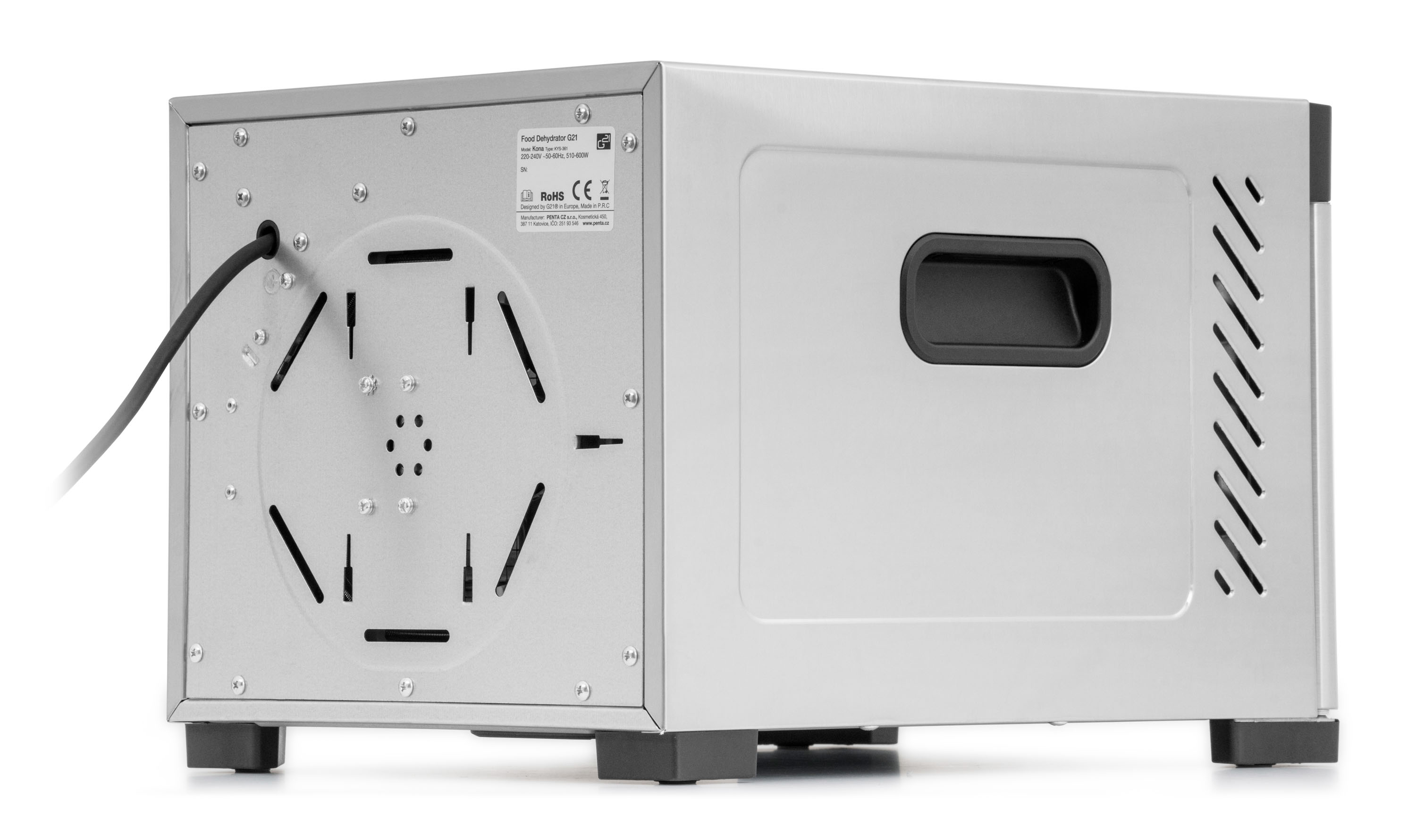 Všechny části, které přijdou do styku s potravinami, jsme vyrobili z nerezu, stejně jako nejčastěji používaná sušicí plata nebo vnější plášť. Z praktického domácího spotřebiče se tak stane i designový doplněk, který vkusně ladí s každým typem kuchyně. Péče o sušičku je navíc díky tomu i nenáročná a rychlá.