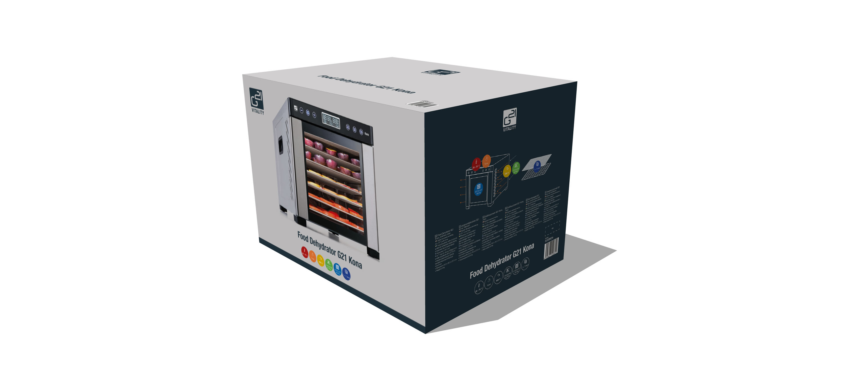 Řídící jednotka sušičky G21 Kona má dokonale řešenou elektroniku, ovládání je intuitivní a snadné. Časovač hlídá dobu přípravy a po skončení sušení sušičku sám vypne. Velkou výhodou je funkce KEEP WARM pro udržení teploty i po skončení sušení. Díky této funkci sušička s minimálním výkonem udrží teplotu 35 °C po dobu 24 hodin. Pak se sama vypne. Regulátor teploty vám dává absolutní kontrolu nad sušicím procesem. Usušte si to, co chcete, přesně tak, jak to chcete.