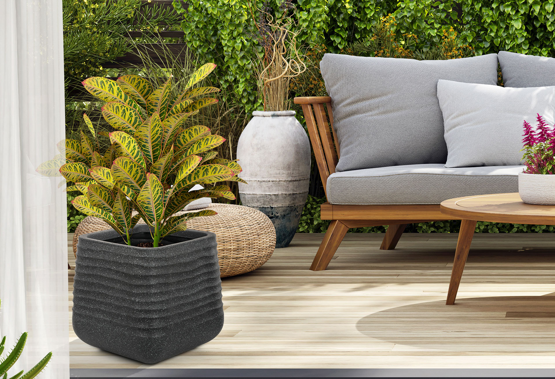 Květináč je vyrobený z kvalitního 0,5 cm silného plastového materiálu, který vás nelimituje ani co se týče umístění, ani užívání. Květináč je lehký a zároveň výjimečně odolný vůči povětrnostním vlivům. Nemusíte uklízet květiny pod střechu při každé letní spršce ani při silném větru. Naopak vám letní déšť pomůže s údržbou. Květináč můžete na zahradě nechat i v zimě – je odolný vůči mrazu až do -35 °C. Stěny květináče stačí při znečištění opláchnout vodou a je zase jako nový.