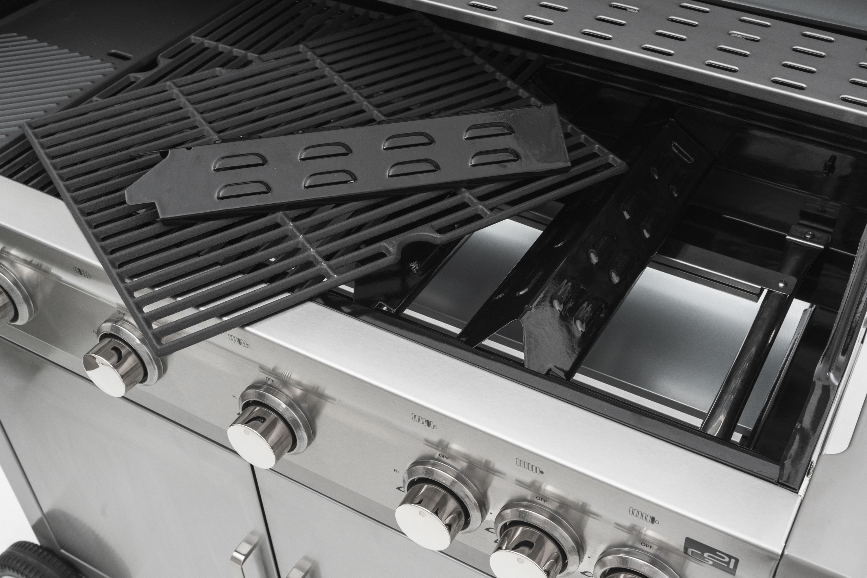 Přímo nad hořáky je umístěn kovový profil, který zabraňuje skapávání tuku mezi plameny a jeho vzplanutí. Zároveň zabraňuje přímému ohřevu mřížky pouze v místě hořáku, nedochází tak k přehřívání pouze jedné části mřížky, ale celá mřížka se vyhřívá rovnoměrně. Případný tuk skapávající z grilovaného masa stéká po stěnách grilu do odkapávací misky ve spodní části grilu, což prodlužuje životnost hořáků.