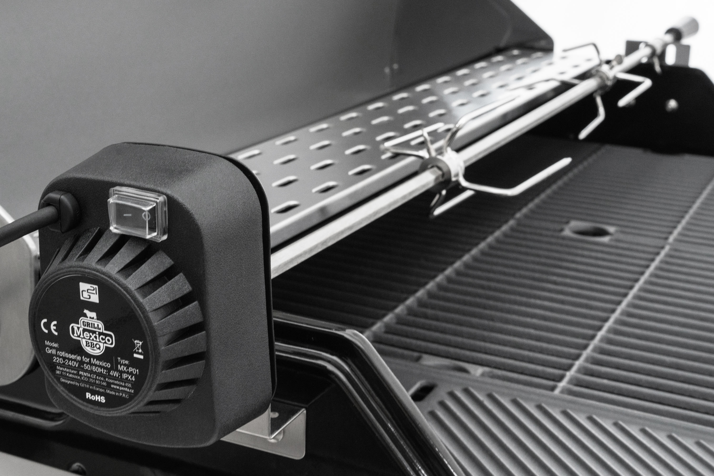 K zahradnímu grilu od nás zdarma obdržíte redukční ventil a nerezovou grilovací jehlu s motorem. Grilovací jehla s motorem je vyrobena z nerezové oceli a z obou stran je opatřena čtyřmi jehlicemi s aretačními šrouby, díky kterým si můžete jehlice nastavit podle vlastní potřeby.