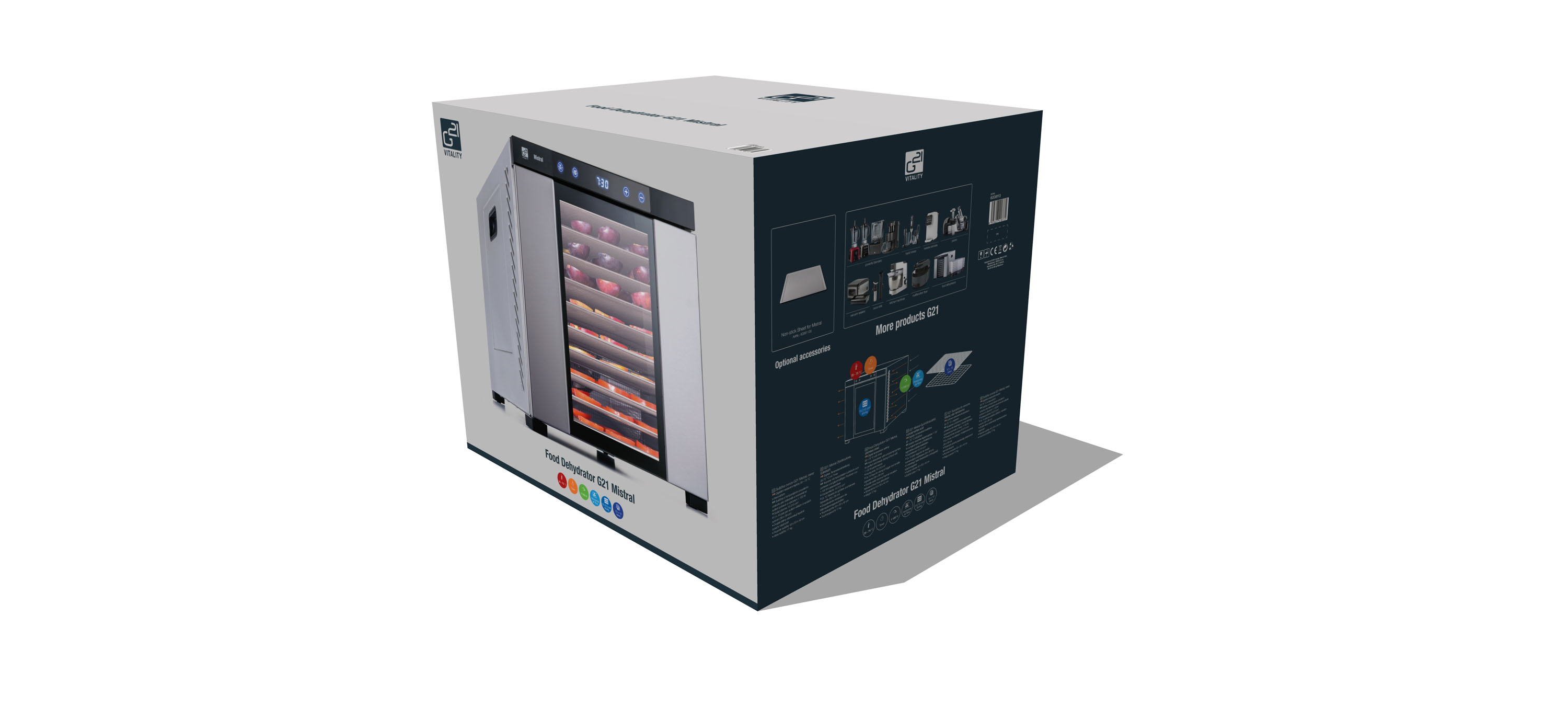Horizontální sušička potravin G21 Mistral je výsledkem dlouhého zkoušení, testování a využití nejnovějších technologií v oboru. Veškeré ovoce, zeleninu, bylinky, houby i maso usuší dokonale, rovnoměrně a jednoduše. Nemusíte přeskládávat plata ani otáčet suroviny. Dokonce se nemusíte zabývat ani údržbou sušičky, díky použitým materiálům je odolná a snadno se čistí.