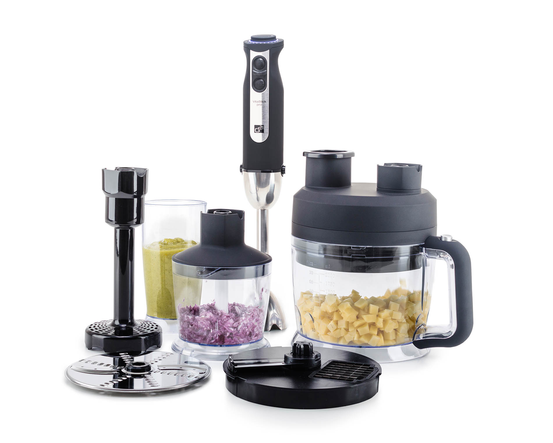 Tyčový mixér VitalStick Pro s neuvěřitelným výkonem 1 000 W, krásně tichým chodem, unikátně sestavenými noži, extra odolným celokovovým tělem a bohatým příslušenstvím vám jako novinku představujeme právě teď. V čem je ještě výjimečný?