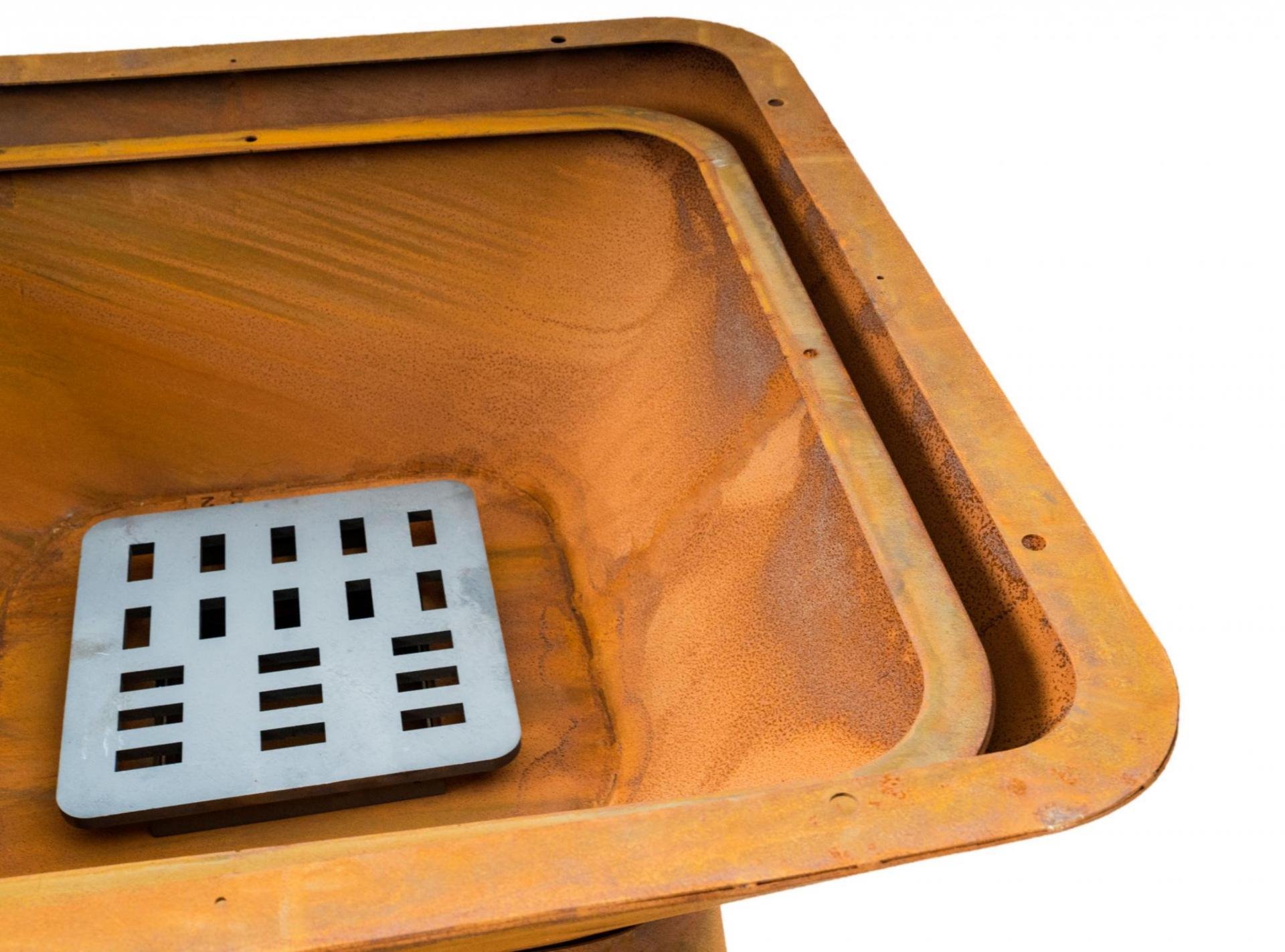 Corten je unikátní a odolný materiál s vynikající odolností proti povětrnostním vlivům. Ochranná vrstva rzi nejenže zabraňuje další korozi, ale také dodává grilu jedinečný a atraktivní vzhled, který se s časem mění a stává se výraznějším.