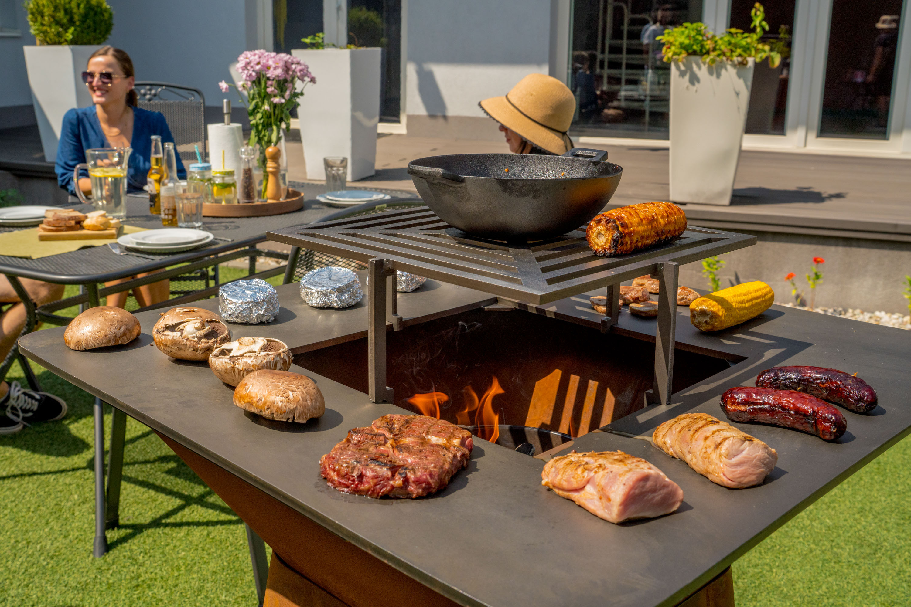 Díky svému provedení, masivnosti, speciálnímu materiálu a atraktivnímu designu se cortenové grily řadí mezi prémiové grily a grilování na nich patří už do nejvyšší úrovně. Jsou vhodné pro velkou společnost i do restaurací, pro přípravu rautů a různých oslav a svateb.