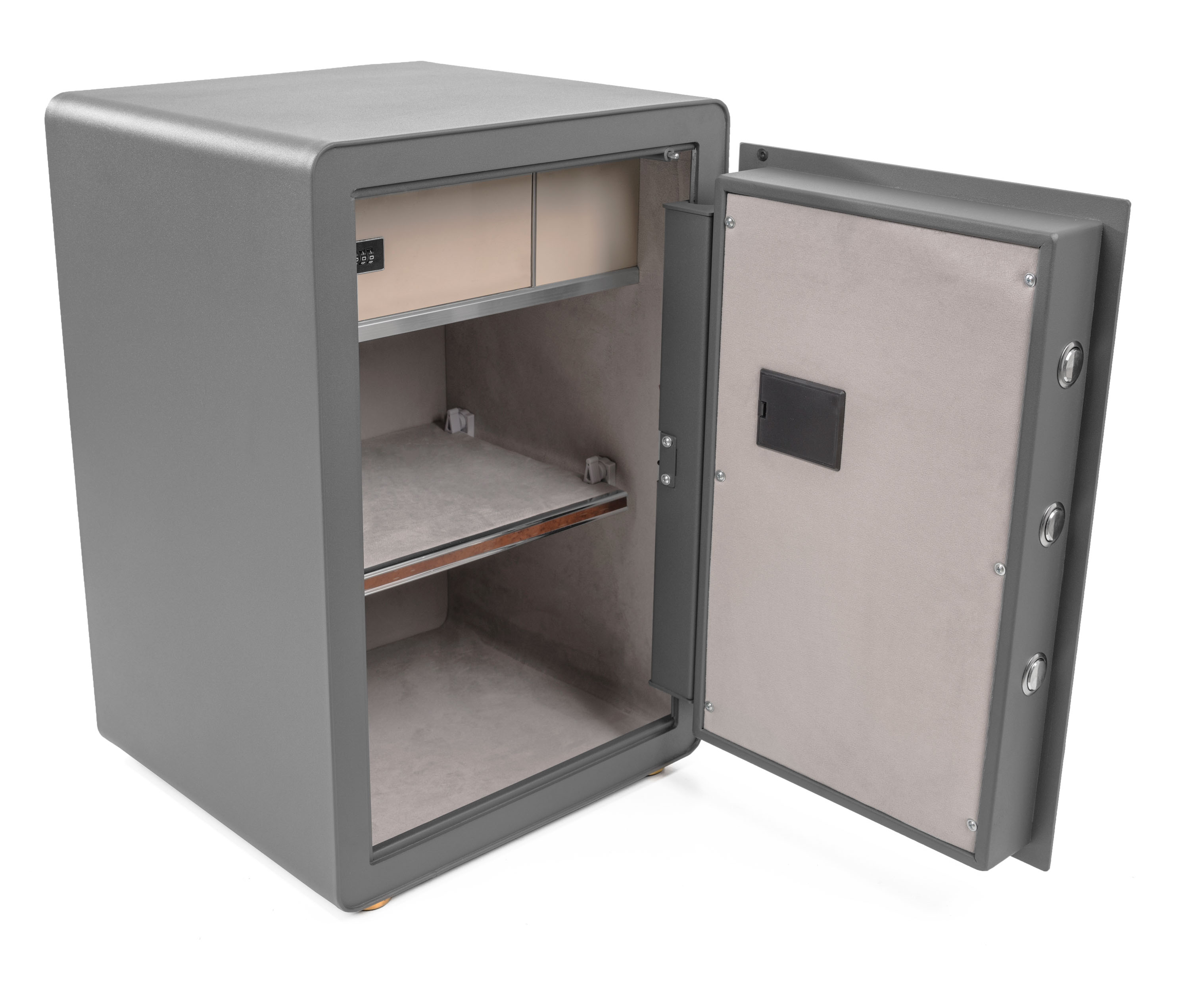 Do trezoru G21 jsme přidali odnímatelnou polici, díky které si vnitřní prostor snadno přizpůsobíte podle aktuálních potřeb. Navíc jsme na horní stranu trezoru zabudovali praktickou vnitřní přihrádku, která je uzamykatelná samostatným číselným zámkem a nabízí další úroveň zabezpečení k hlavnímu prostoru. Bez ohledu na to, zda do trezoru chcete uložit doklady, šperky nebo cennou techniku, vždy budete mít dostatek místa. K dispozici máte 51,6 litru úložného prostoru.