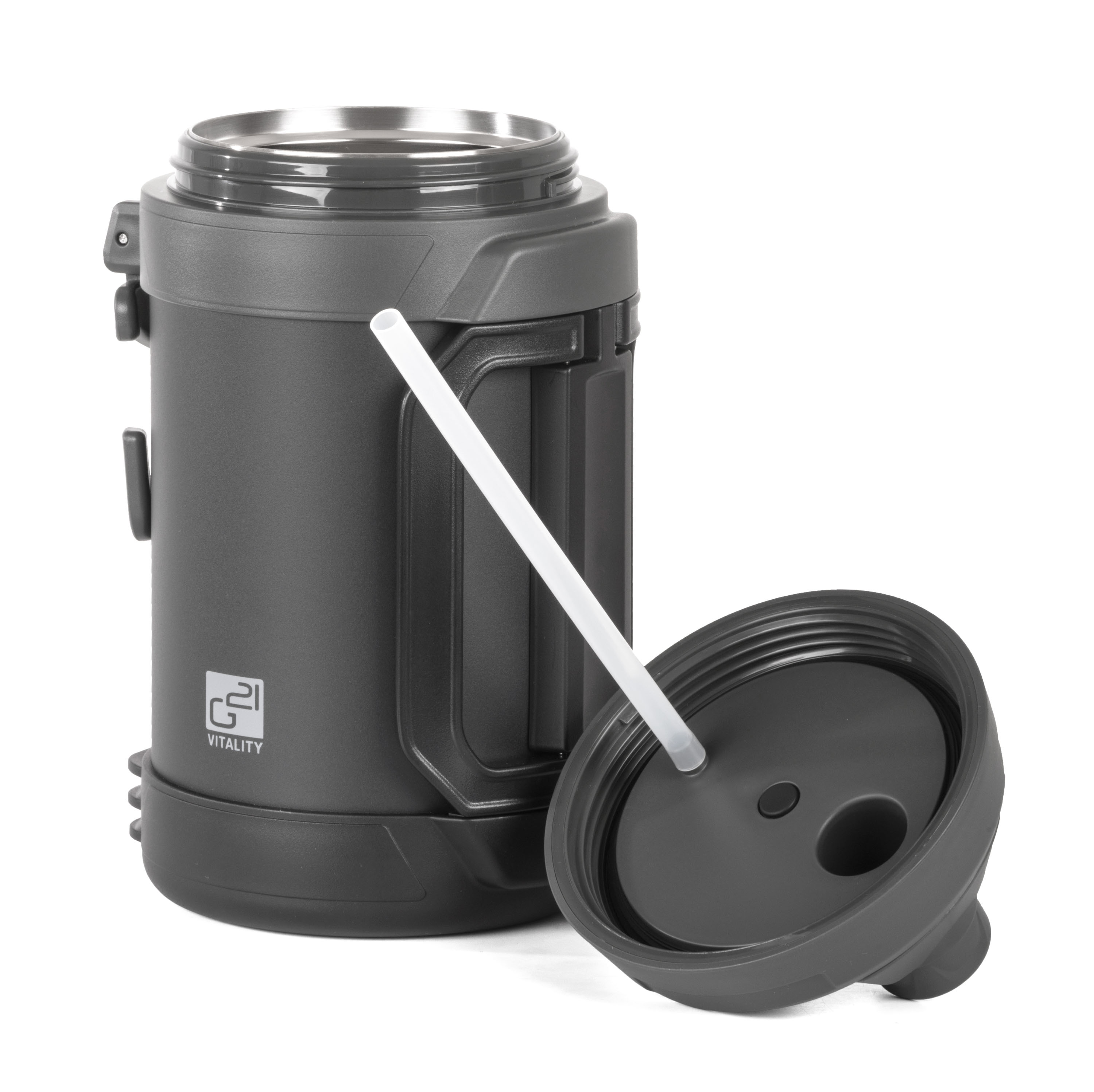 Víko termosky je opatřeno klasickým pítkem a výklopným brčkem. U studených nápojů oceníte pohodlí brčka, na horké nápoje se doporučuje využít klasické pítko, aby nedošlo k popálení. Klasické pítko zárověň slouží jako přesná nálevka pro dávkování nápoje do šálku či kelímku. Dvojitá nerezová stěna udrží nápoj ve správné teplotě po celý den. Ať už vás čeká běžkařská výprava, letní turnaj nebo odpočinkový den u vody, termoska G21 určitě obstojí.