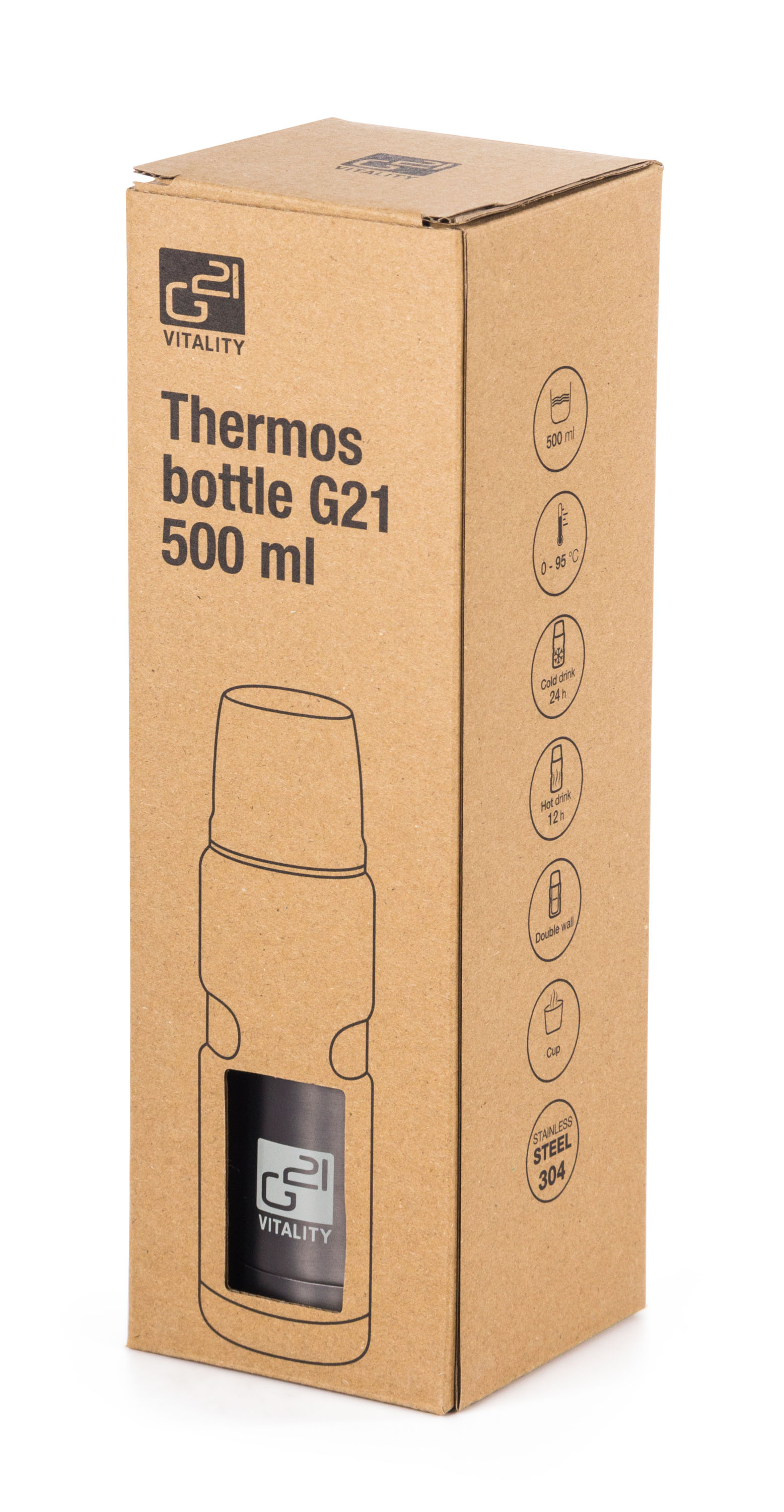 Největší předností termosky G21 je kvalitní termoizolace. Termoláhev z nerezové oceli má dvojité stěny a dokonale těsnící víčko s vnějším krytem. Nápoje tak udrží v požadované teplotě opravdu dlouho – horké až 12 hodin, studené až 24 hodin.