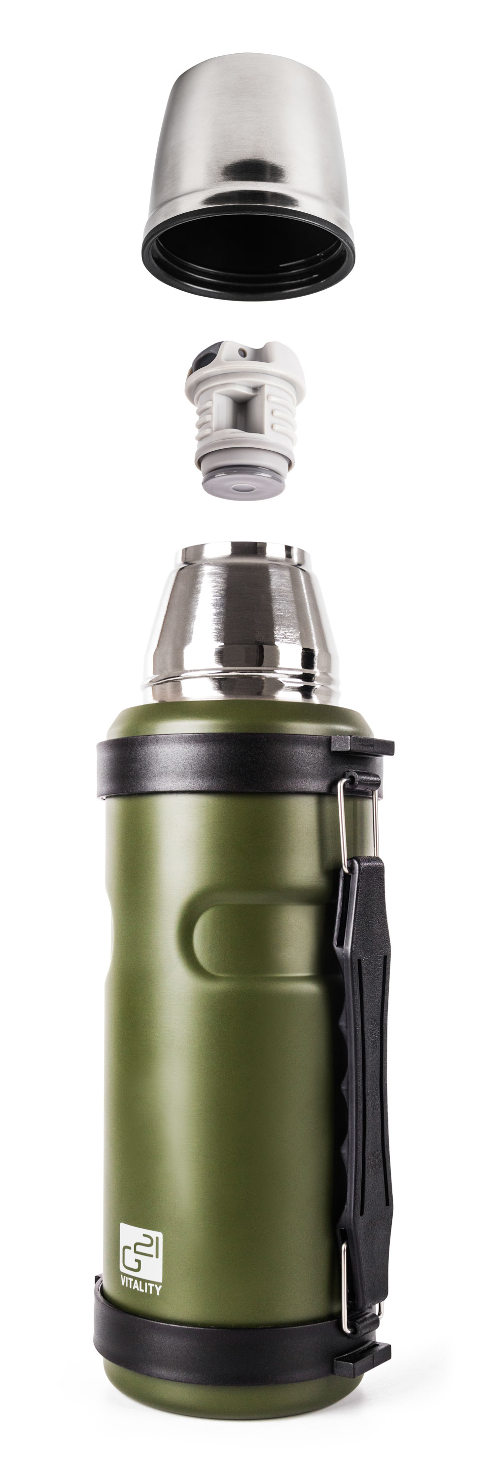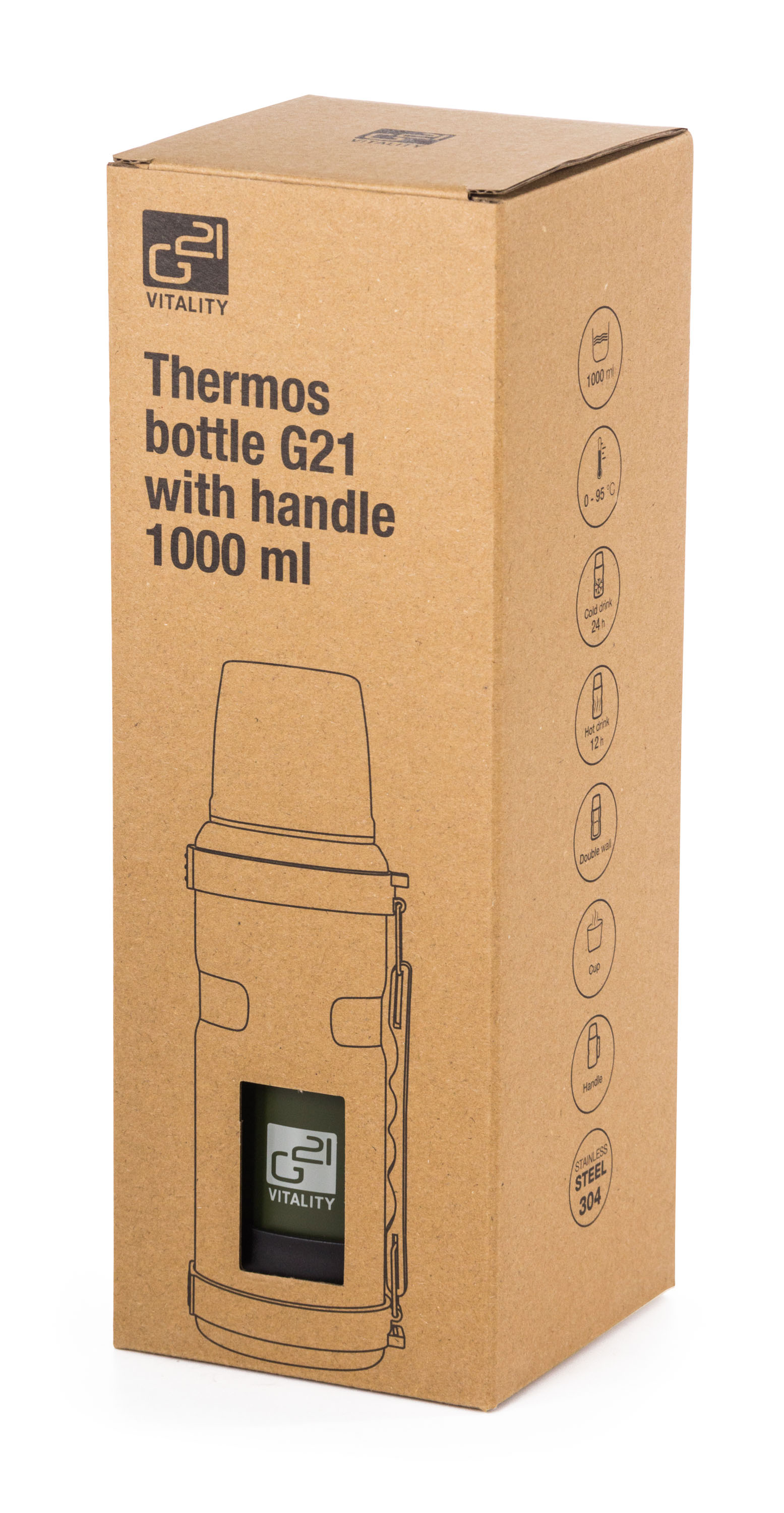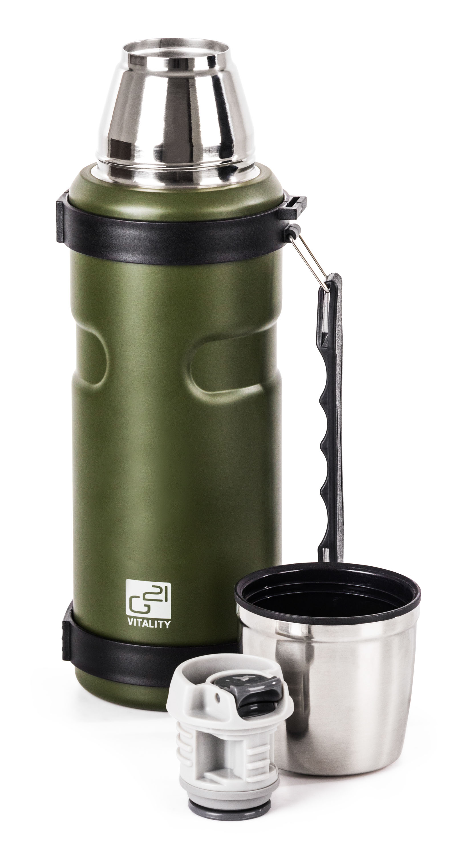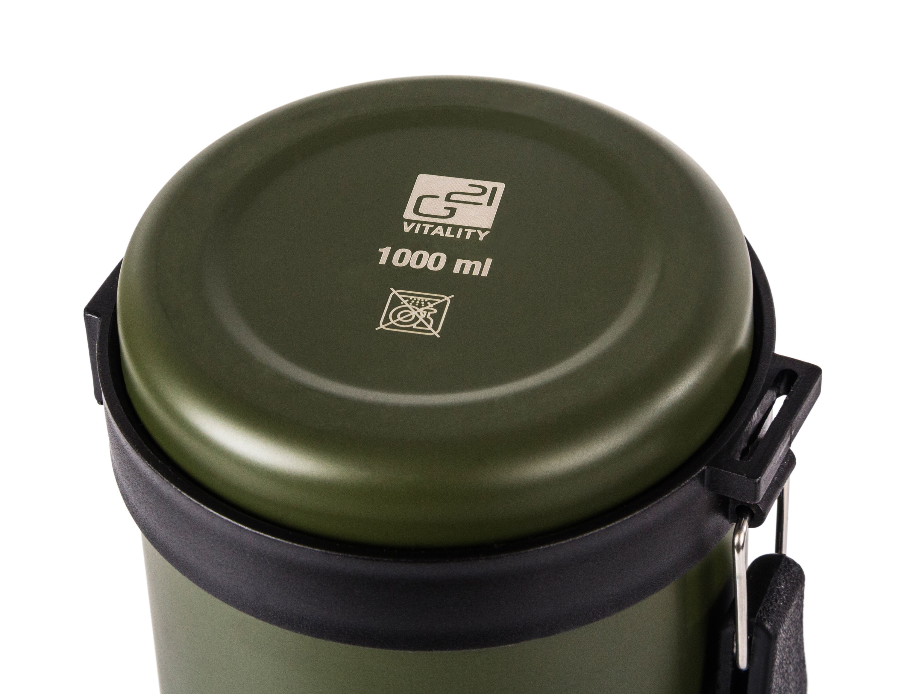 Termoska G21 na pití, 1000 ml, khaki zelená s rukojetí
