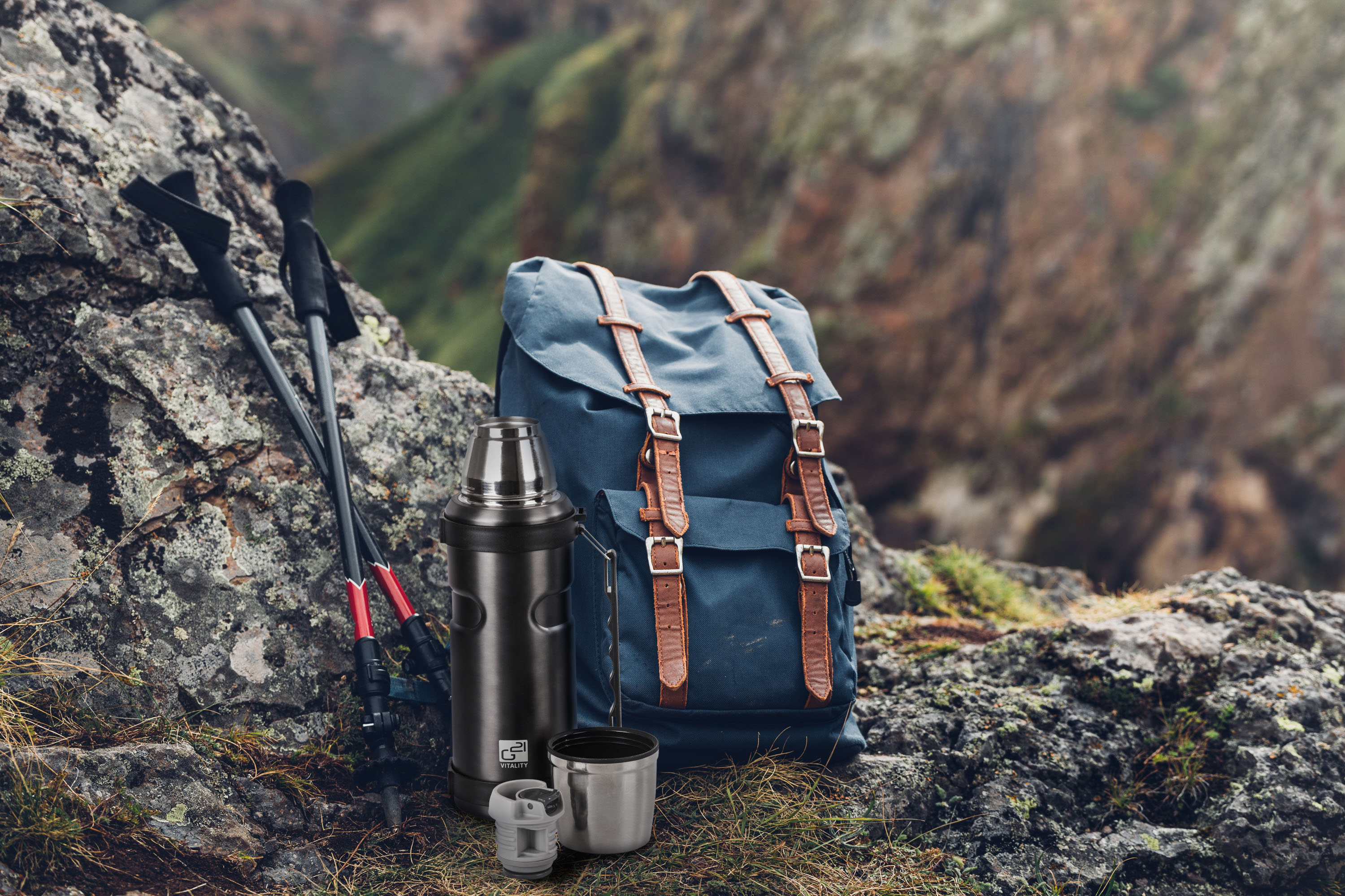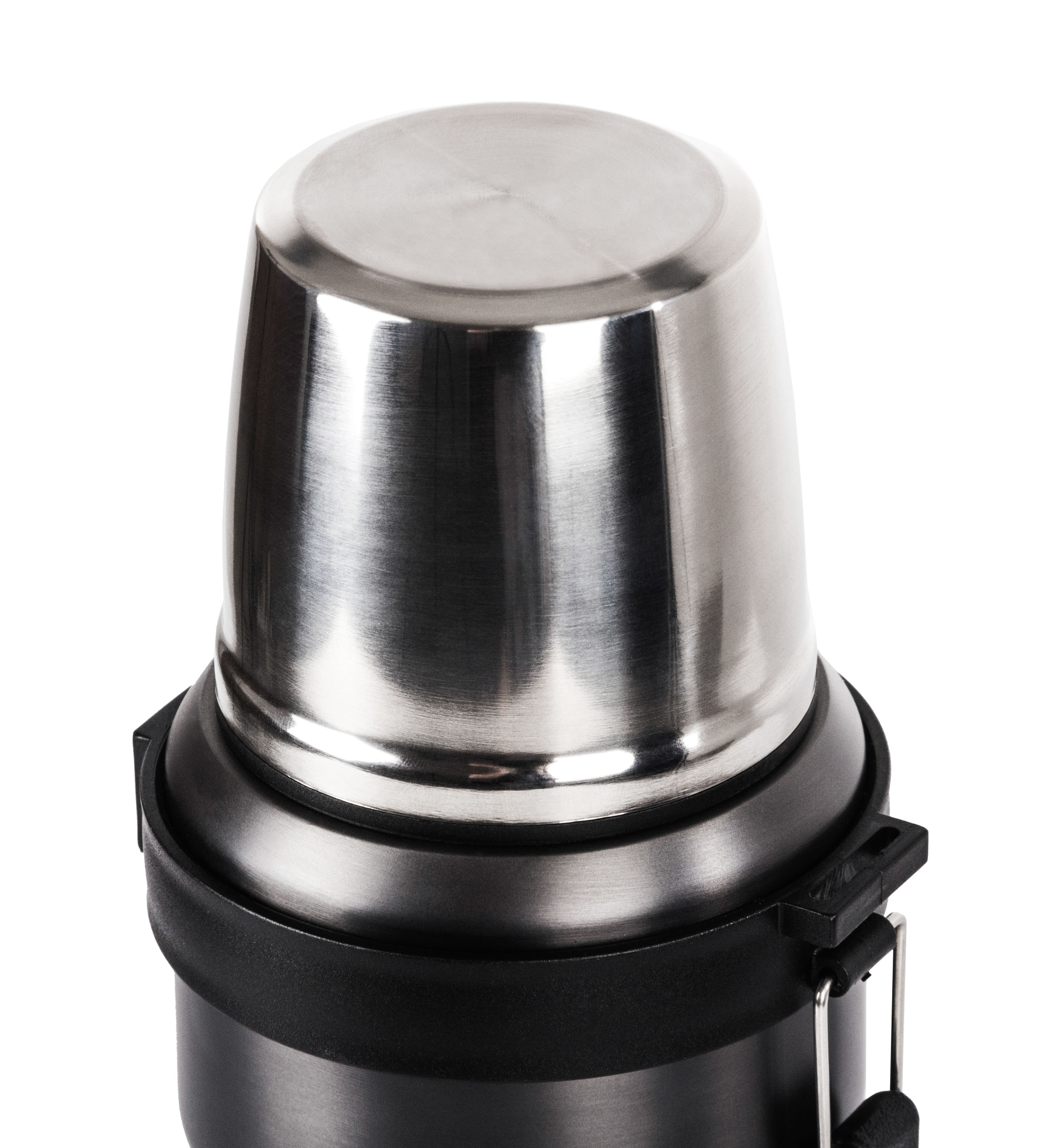 Termoska, objem 1200 ml, nerez, dvojitá stěna, pítko, kalíšek, 24 h studené, 12 h teplé, černo-šedá.