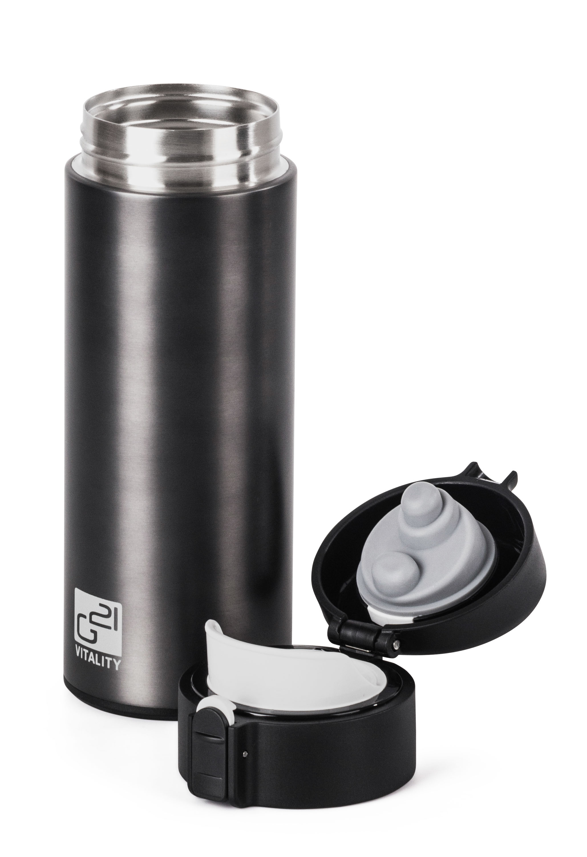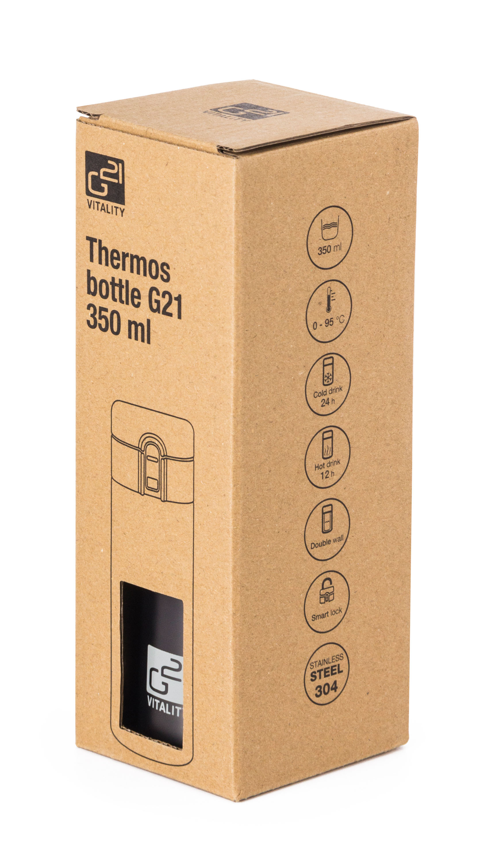 Největší předností termohrnku G21 je kvalitní termoizolace. Termoláhev z nerezové oceli má dvojité stěny a dokonale těsnící víčko. Nápoje tak udrží v požadované teplotě opravdu dlouho – horké až 12 hodin, studené k osvěžení až 24 hodin.
