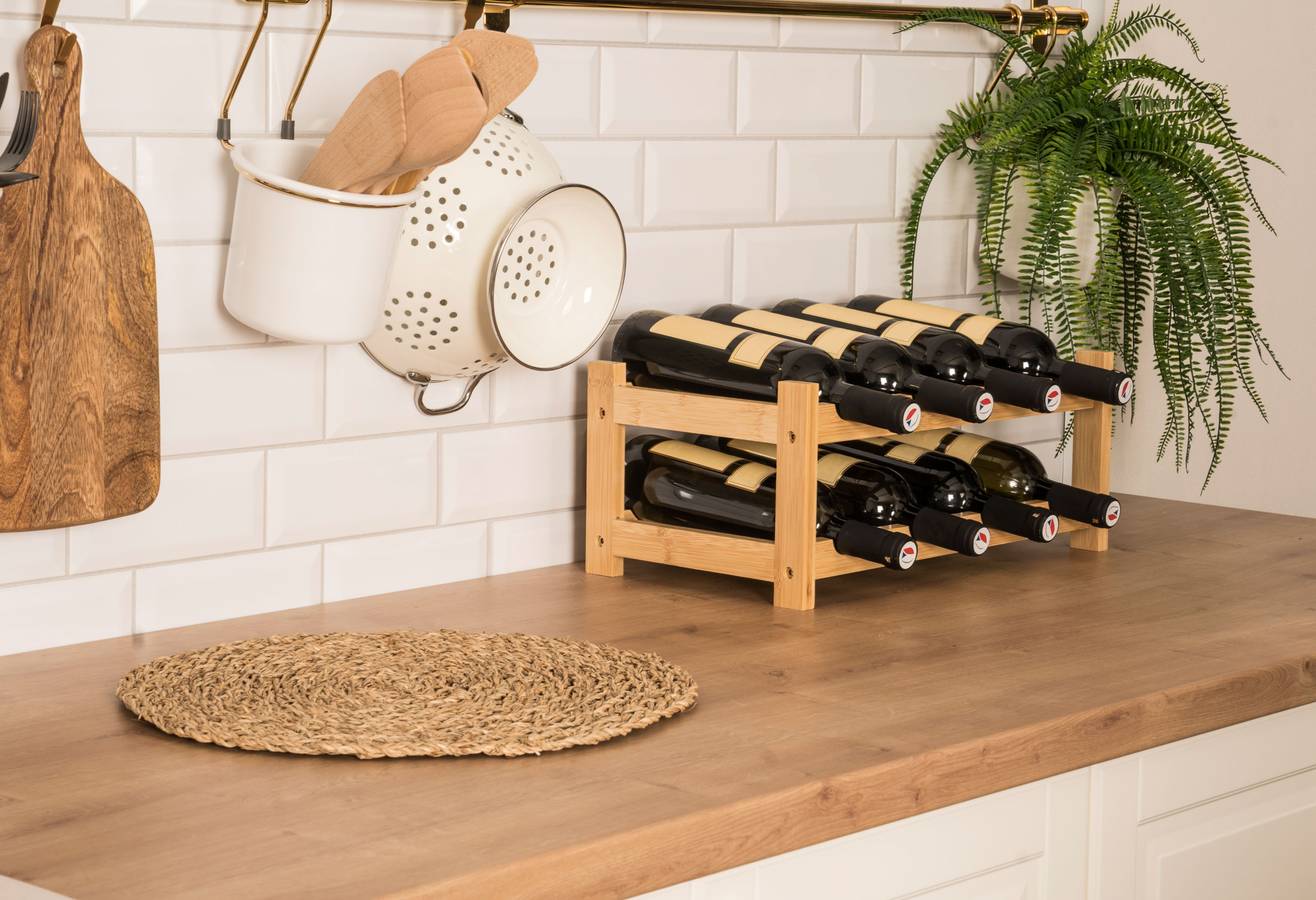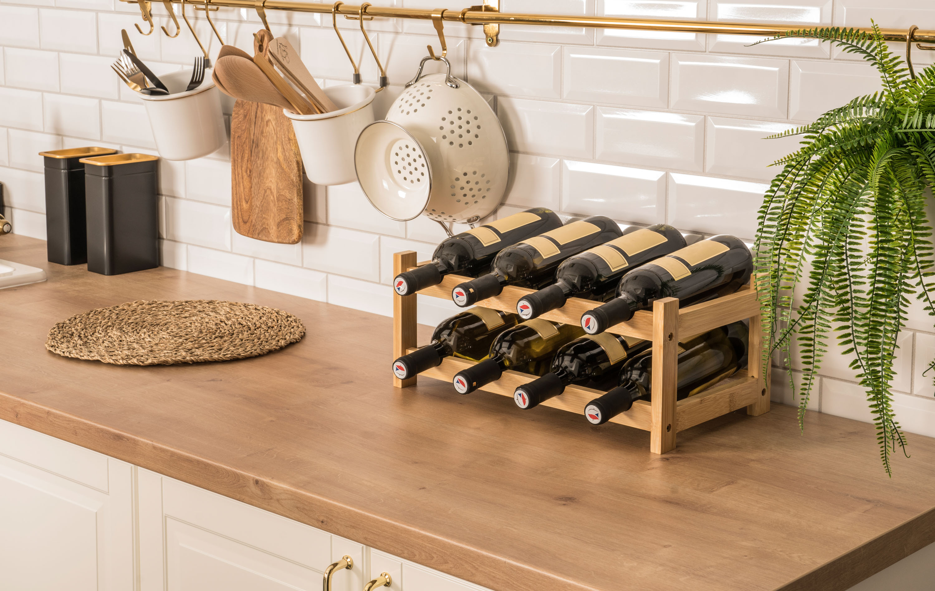 Pořiďte si designově čistý a zároveň praktický stojan na 8 lahví vína. Precizně zpracované bambusové dřevo mu dává příjemný přírodní vzhled, takže stylově doplní každý interiér. Hlavní ale je, že jsou v něm láhve bezpečně a správně uložené, nedochází k vysychání korku a snadno se v nich orientujete.
