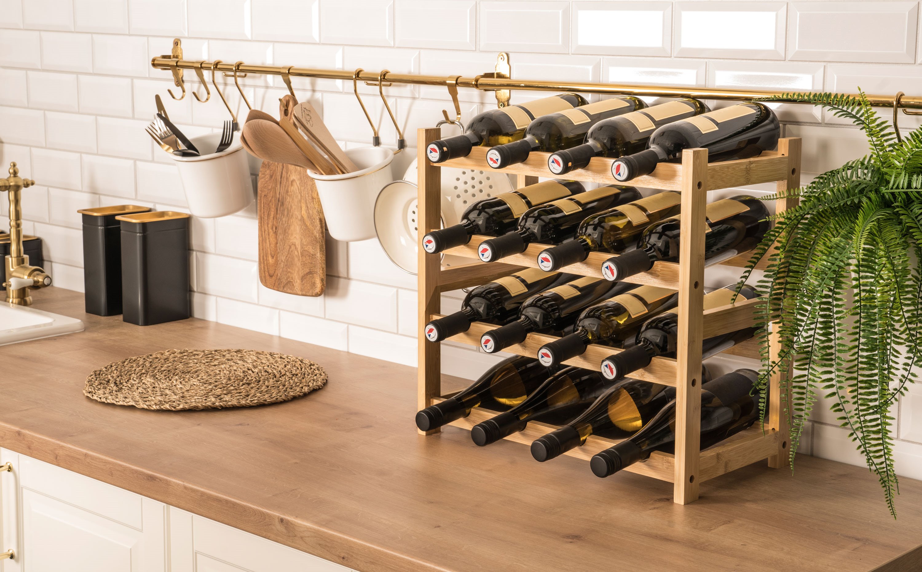 Pořiďte si designově čistý a zároveň praktický stojan na 16 lahví vína. Precizně zpracované bambusové dřevo mu dává příjemný přírodní vzhled, takže stylově doplní každý interiér. Hlavní ale je, že jsou v něm láhve bezpečně a správně uložené, nedochází k vysychání korku a snadno se v nich orientujete.