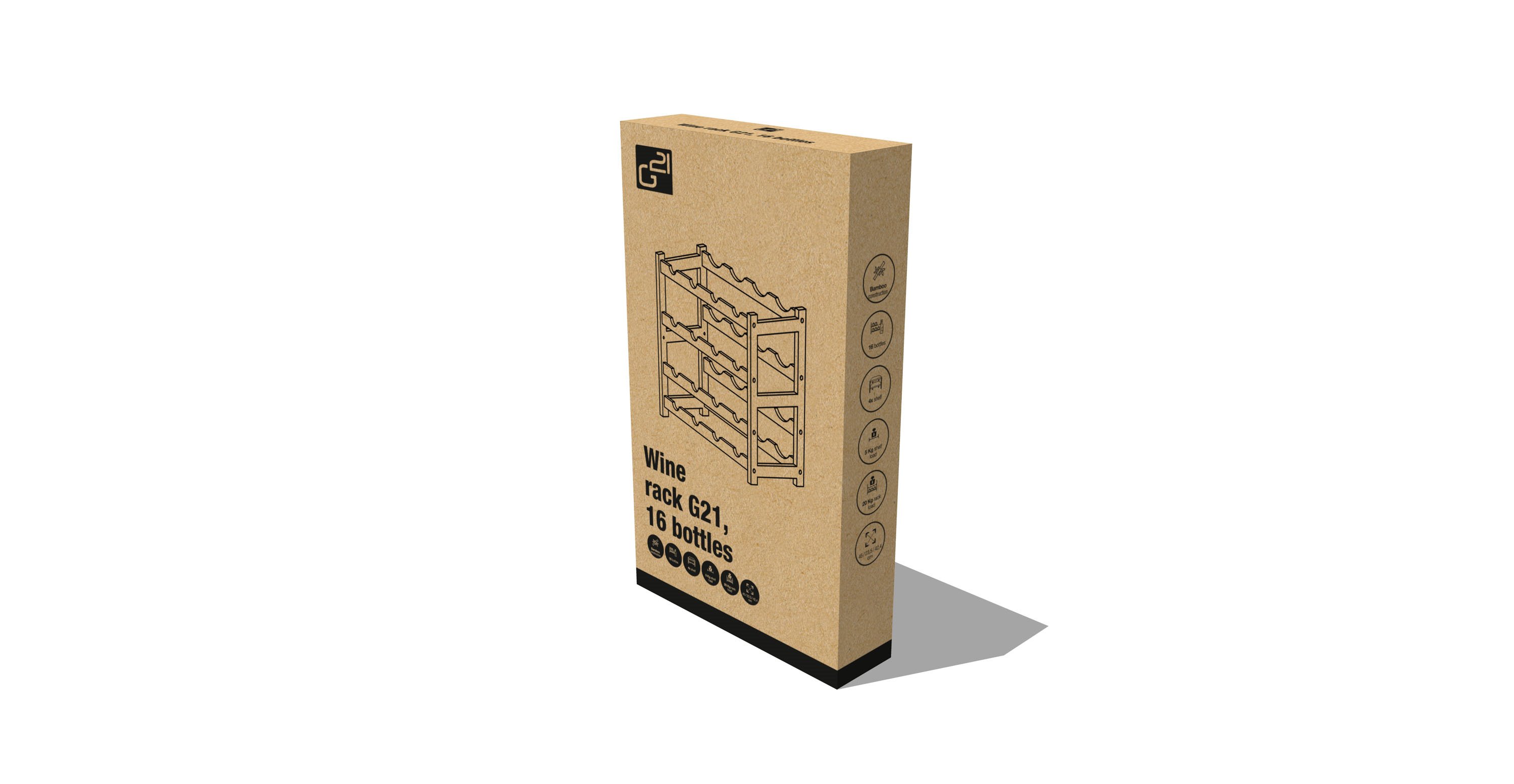 Stojan G21 má v bočních lištách výřezy – na zadní straně větší, na přední straně přesně na velikost hrdla vinné lahve. Lahve jsou v něm bezpečně a spolehlivě položené a nedojde k jejich rozbití.