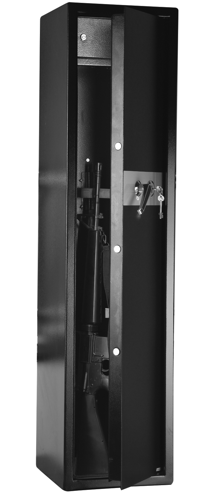 Pro větší bezpečí vašich zbraní je ve dvířkách trezoru umístěno 5 kovových rozvorů, které zajišťují, že se do trezoru bez vašeho vědomí nikdo nedostane.