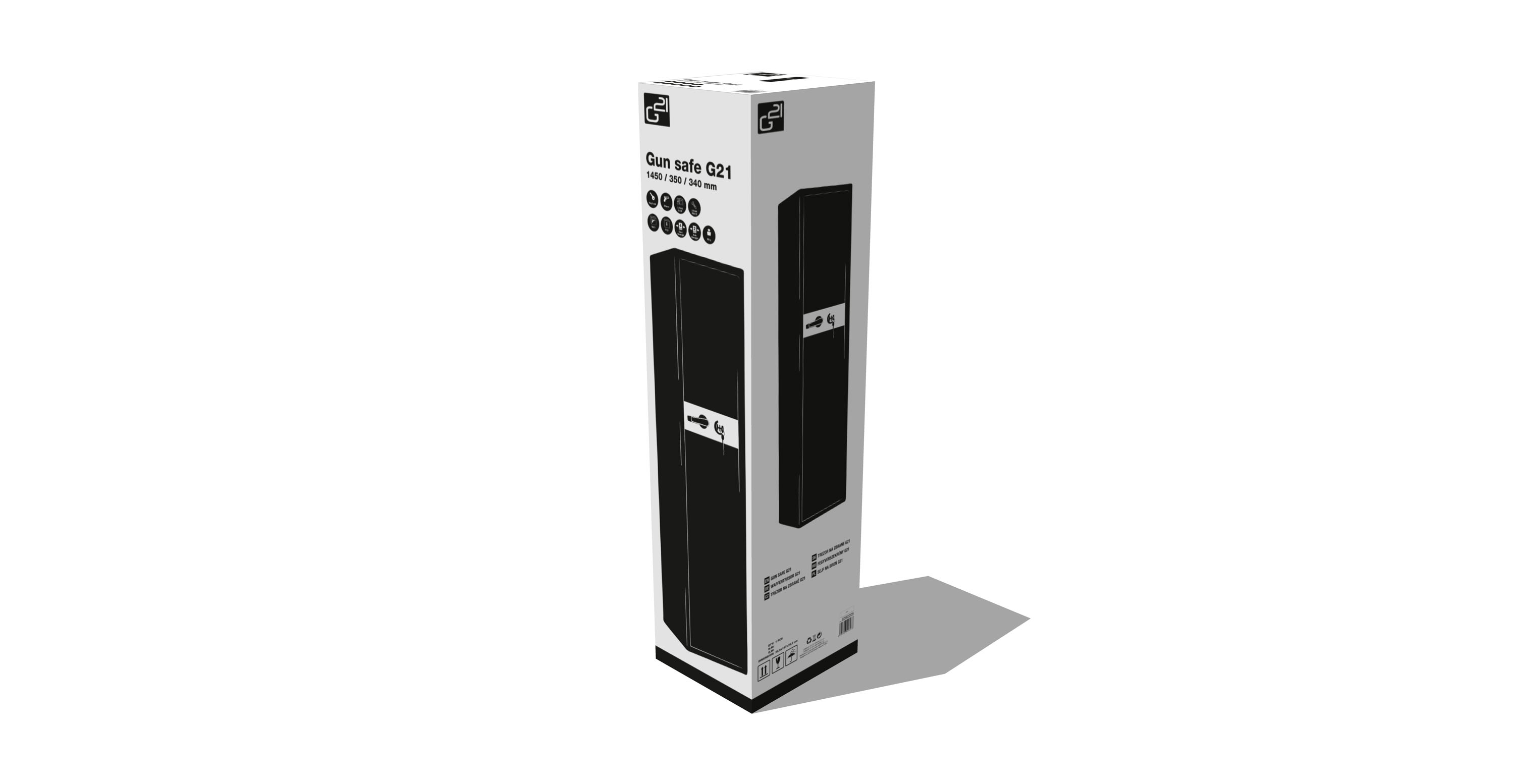 Trezor na zbraně G21 skýtá dostatečný prostor pro uložení pěti dlouhých střelných zbraní. Dále se v trezoru nachází skříňka pro ukládání střeliva.