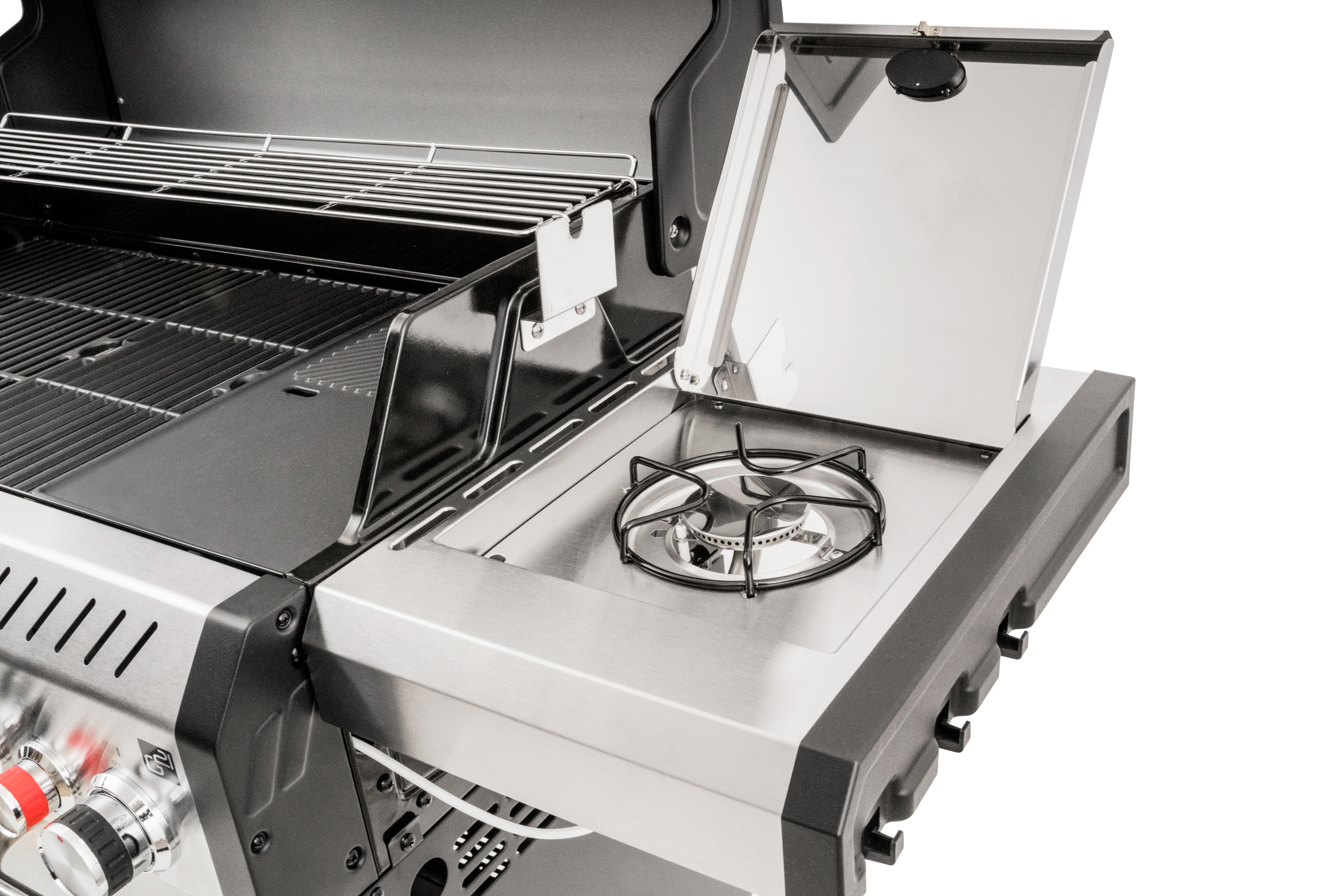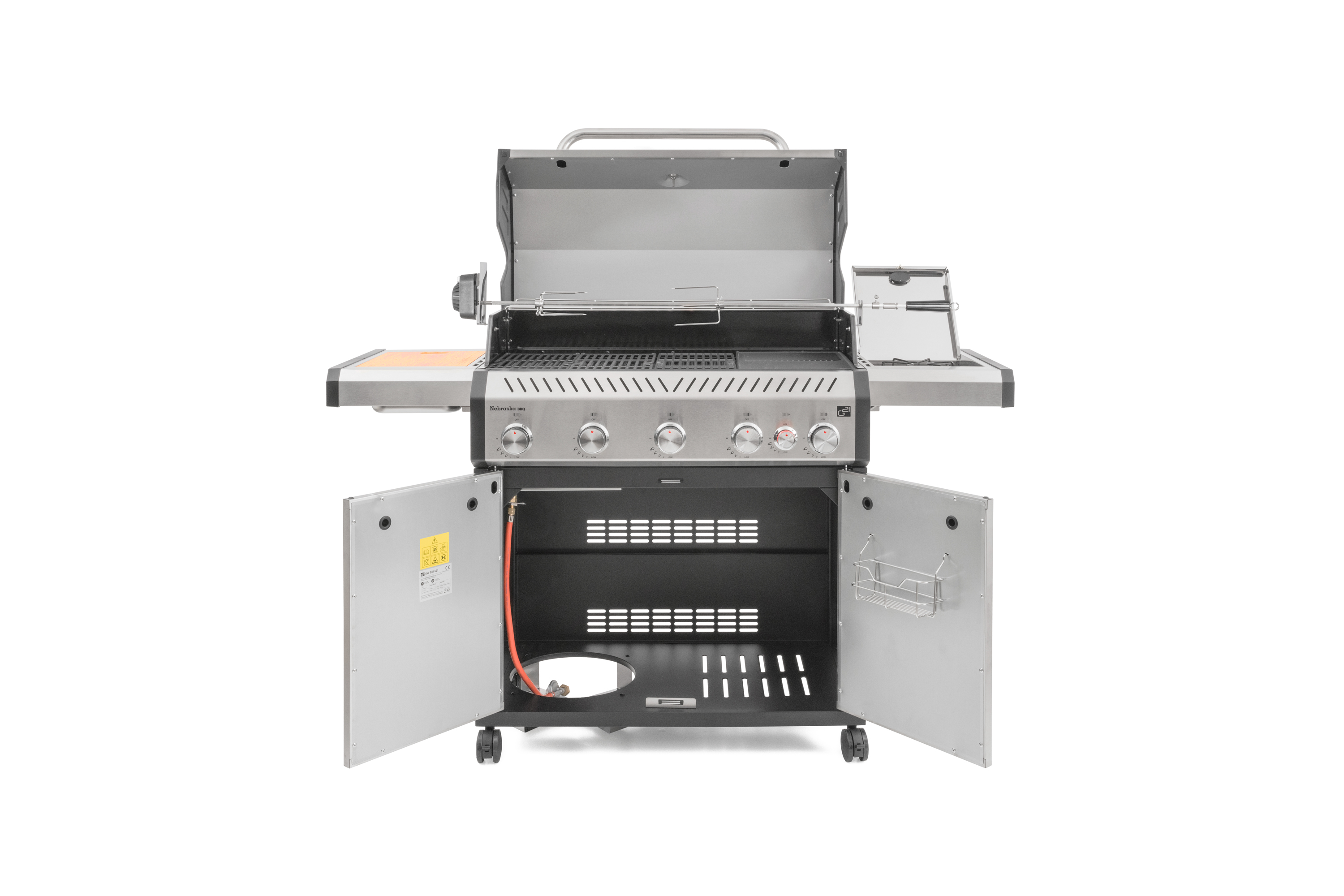 Pět hlavních hořáků s výkonem 3,5 kW poskytuje dostatečný výkon pro přípravu většího množství jídel najednou, ať už jde o maso, zeleninu nebo ryby. Boční hořák s výkonem 3,15 kW využijete pro přípravu příloh, ohřev omáček či vaření. Gril je vybavený třemi litinovými rošty a jedním litinovým plátem, které rovnoměrně rozvádějí teplo. Součástí výbavy je také nerezový rošt na ohřev. Ten je ideální pro odkládání hotových pokrmů, aniž by došlo k jejich připalování.