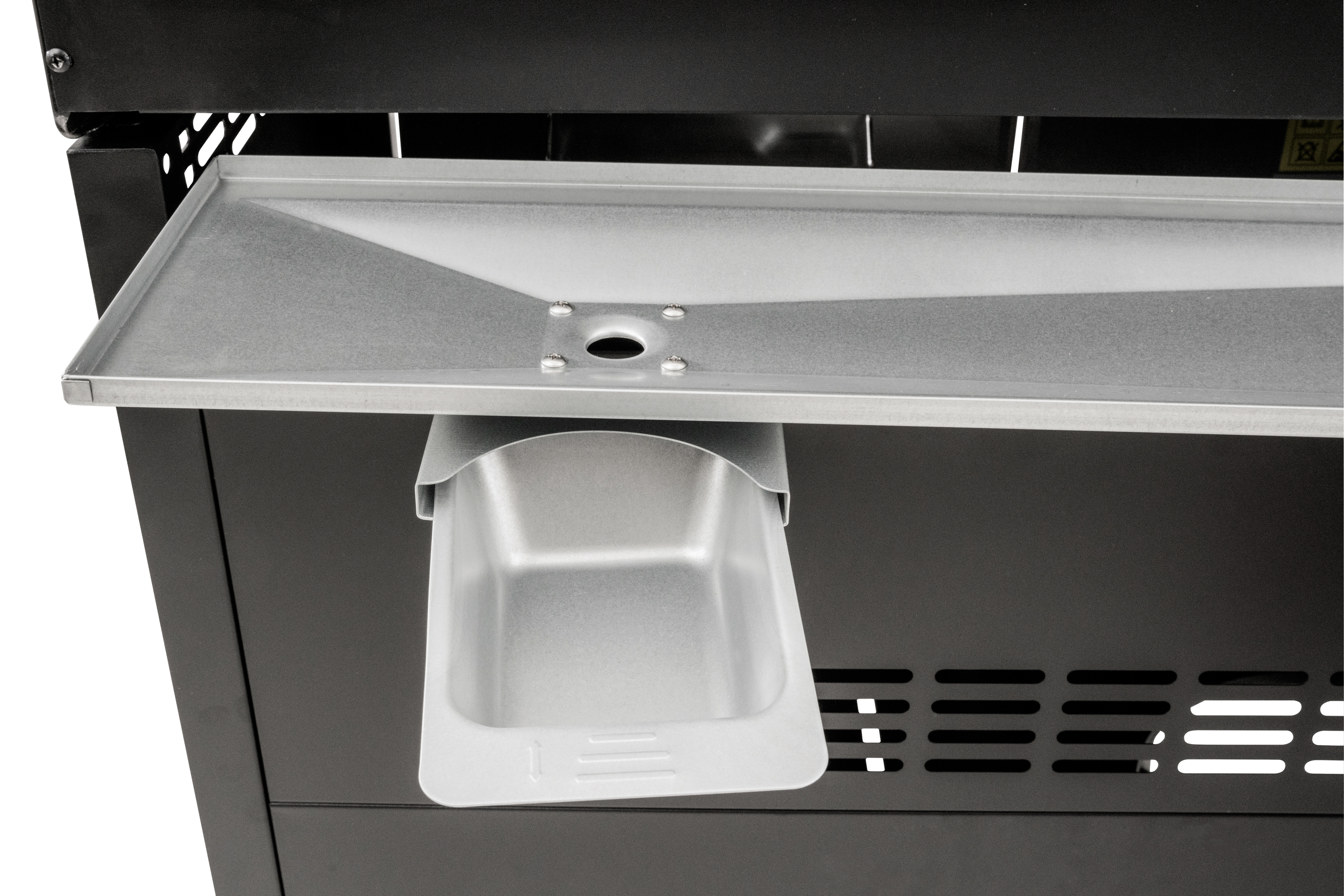 Gril G21 Nebraska BBQ v celonerezovém provedení s atraktivním černým orámováním zaujme už na první pohled. Nejde však jen o design. Nerezová ocel zajišťuje dlouhou životnost, snadnou údržbu a odolnost. Nechybí ani praktické odkládací plochy. Na levé straně grilu najdete stolek s marinovací miskou a dřevěným prkénkem. Vpravo se nachází odkládací stolek s bočním hořákem.