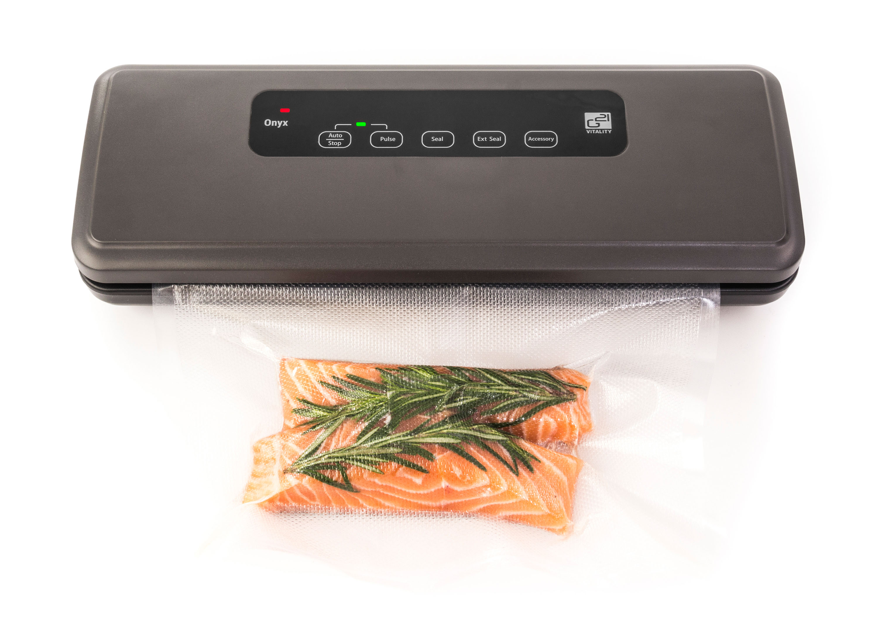 Vakuovačka G21 Onyx umí nejen potraviny zavakuovat a zatavit vakuovací obal, ale umožňuje i manuální odsání vzduchu pomocí funkce Pulse Vakuum nebo nastavení doby tavení podle typu svařované folie.