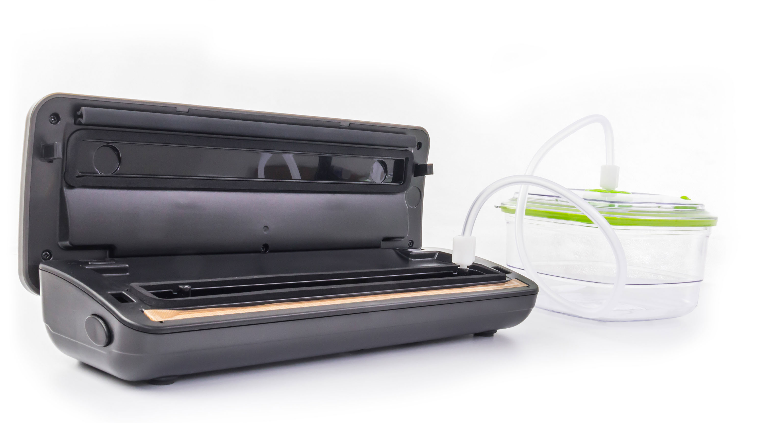 Vakuovačka G21 Onyx odsává vzduch nejen z vakuovacích sáčků nebo fólií v rolkách, ale i z vakuovacích marinovacích dóz. Stačí napojit hadičku na příslušný otvor vakuovací dózy G21 (hadička je součástí balení dózy) o objemu 1,4 nebo 2 l, zmáčknout příslušné ovládací tlačítko a potraviny v dóze budou spolehlivě zavakuované.