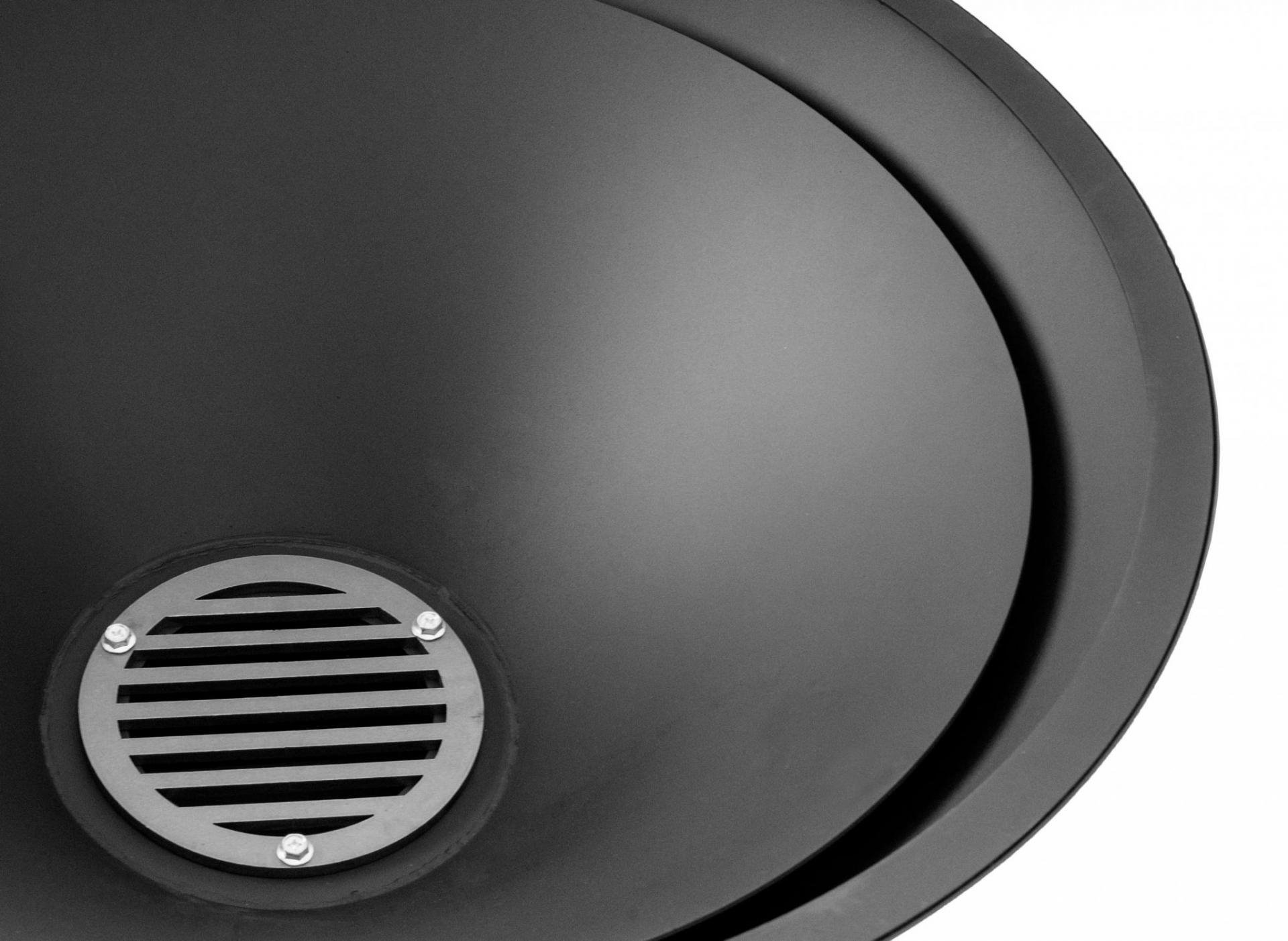 Robustní ocelový gril s planchou, speciální povrchová úprava pro dlouhou životnost, průměr prstence 85 cm, výška grilu 100,5 cm, prostor na ukládání dřeva, dvojitý plášť. V balení je i obal na gril a příslušenství.