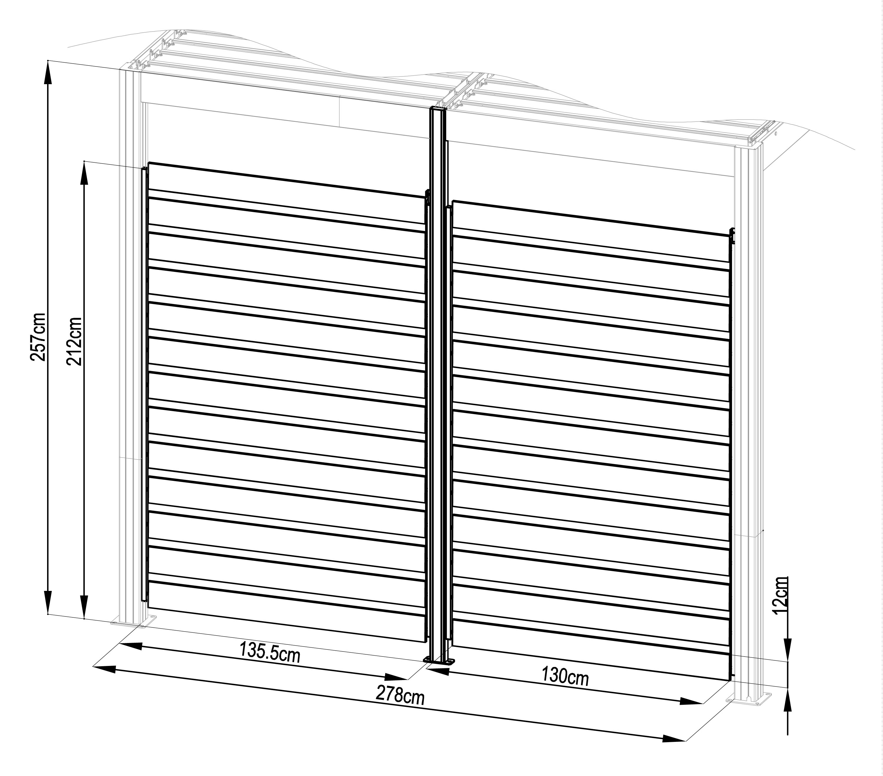 Boční stěna s otočnými pozinkovanými lamelami pro větší soukromí i ochranu před větrem,deštěm či sluncem. Stabilní konstrukce z kvalitního hliníku, snadná instalace.