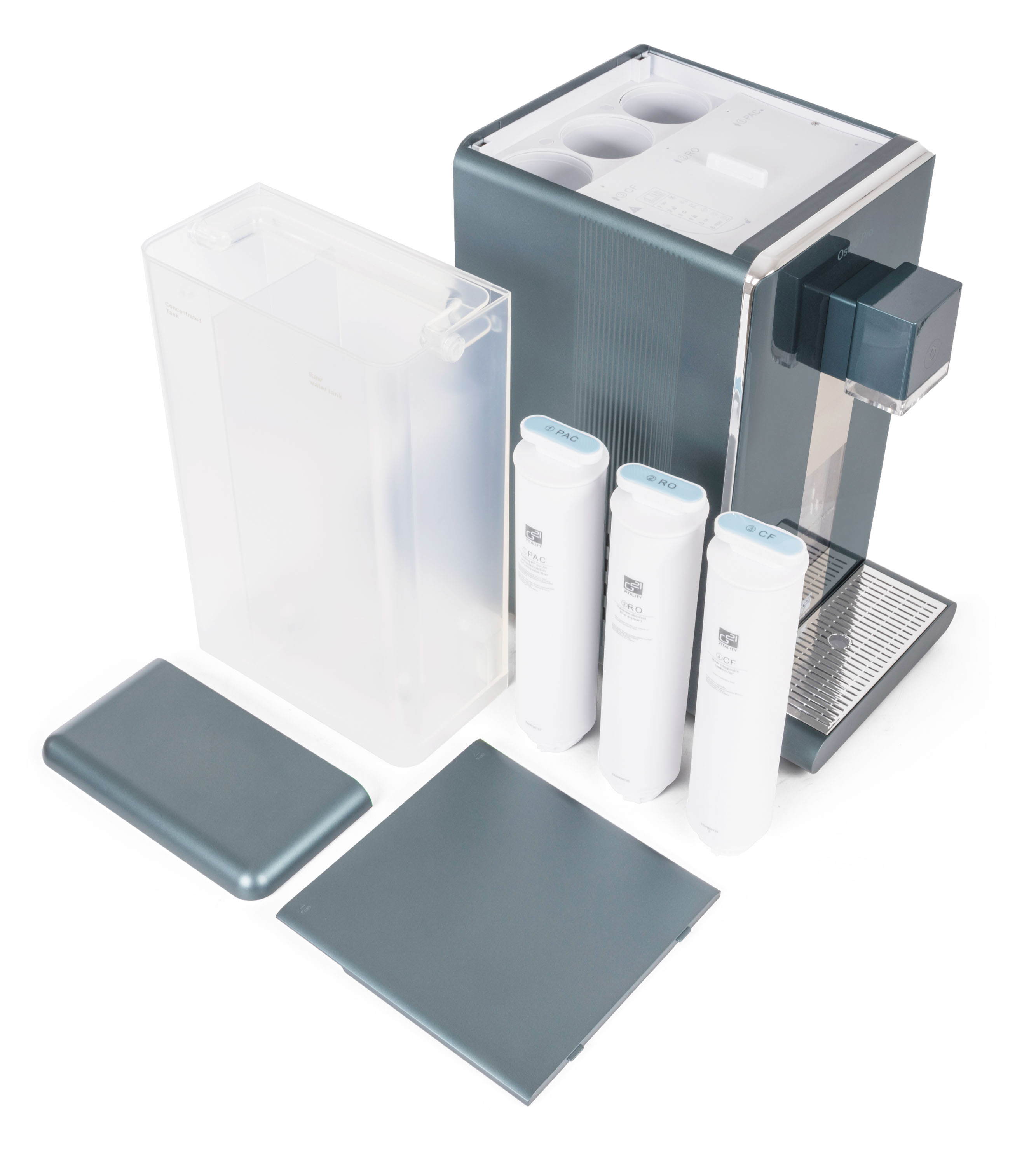 Dvoustupňový filtr pro čističku vody G21 Osmo Pro zachytí pevné částice, eliminuje zbytkový chlor a pohlcuje nepříjemné pachy.